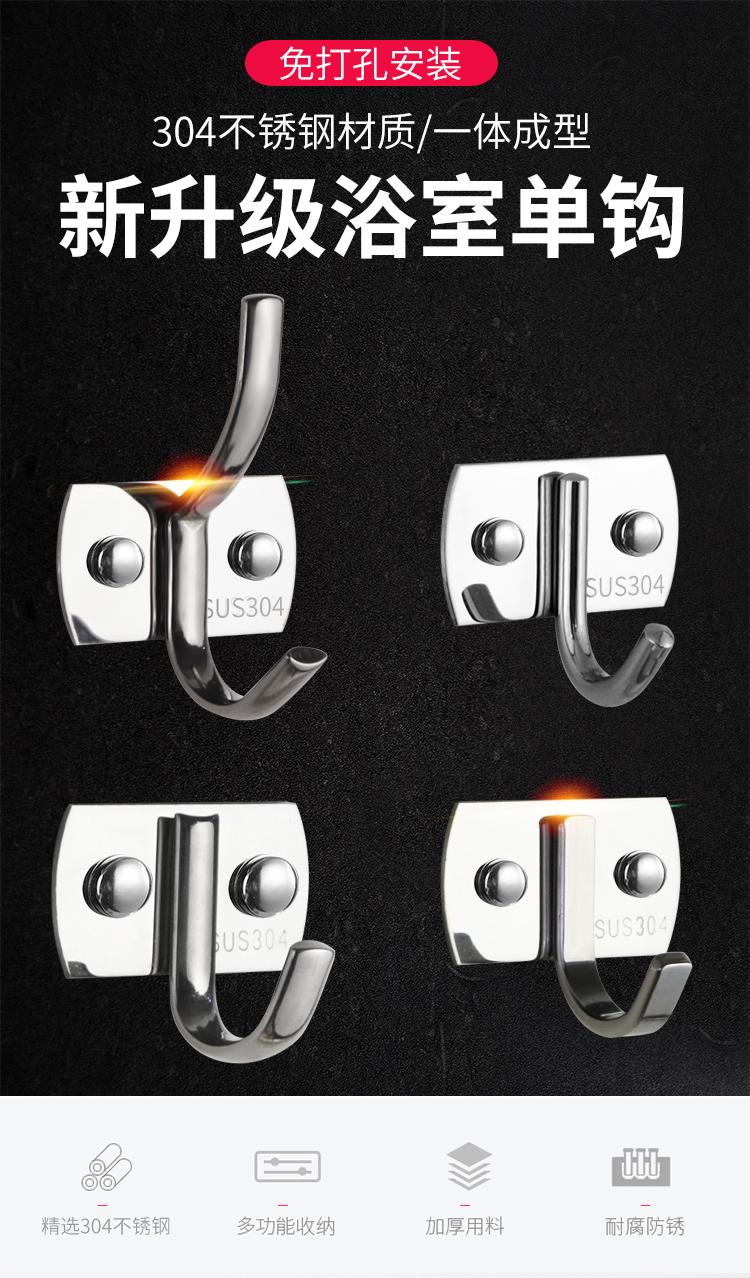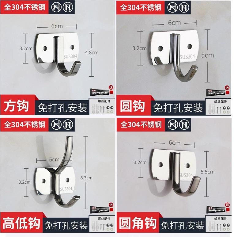 Gancho de Almacenamiento de Acero Inoxidable 304 Colgante de Pared Individual Detrás de la Puerta Ropa Baño Gancho Individual Fila de Ganchos para Abrigos Perforación