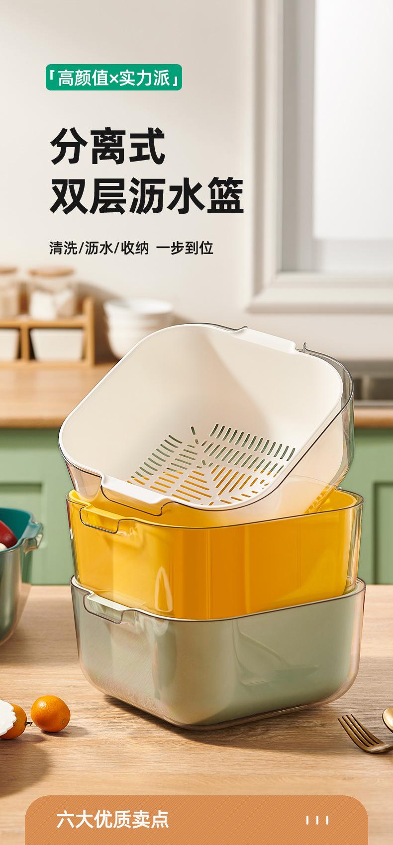 New large size [food grade PET] double layer drain basket / Nordic white, New large size [food grade PET] doub...