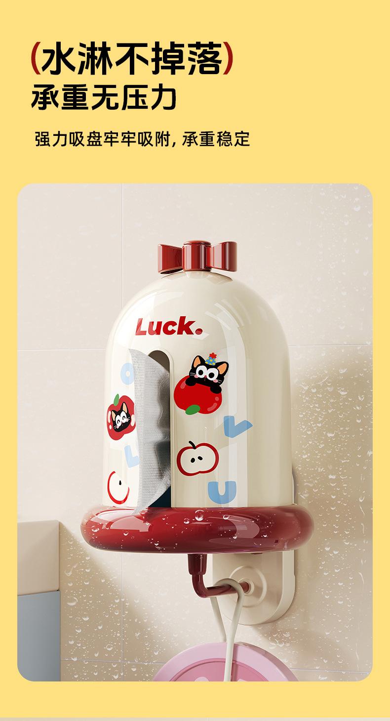 luck cat suction cup tissue holder, Creamy White Suction Cup Paper Towel Holder