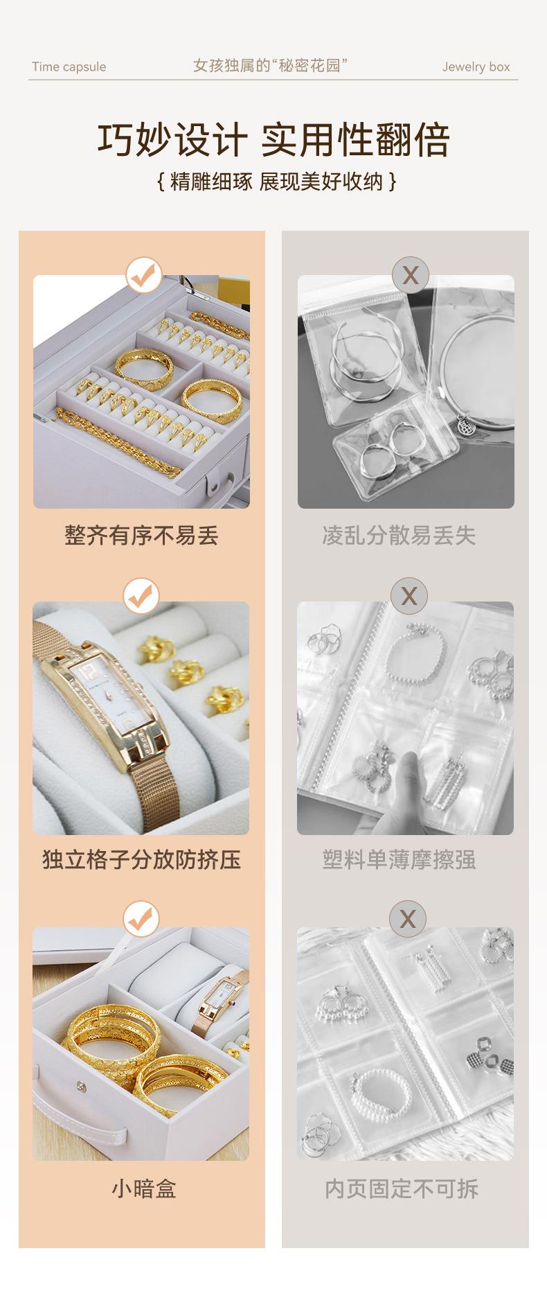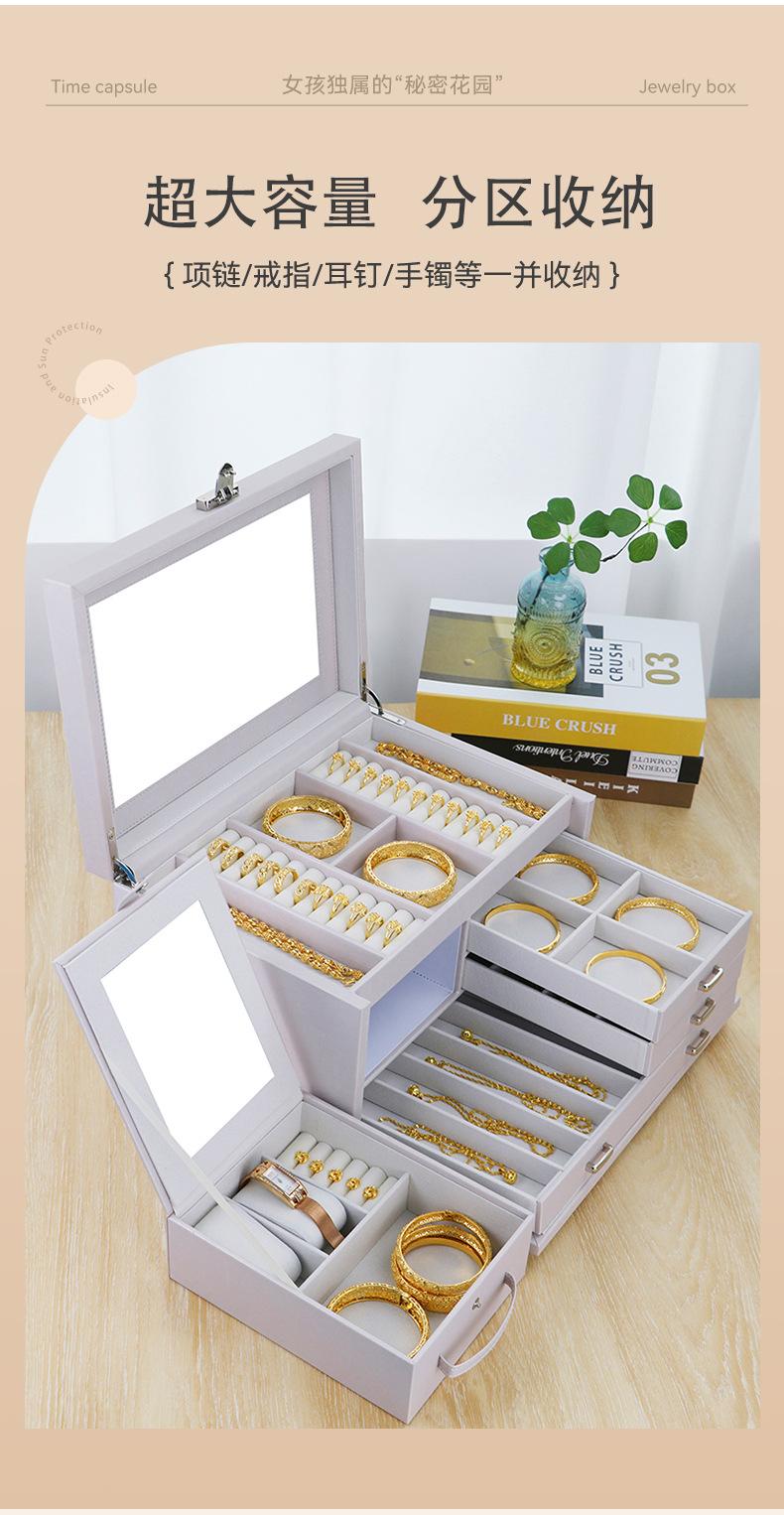 Caja de joyería personalizada, caja de joyería con cerradura, exquisita y de alta gama, para guardar anillos, collares, pulseras, aretes de botón, aretes