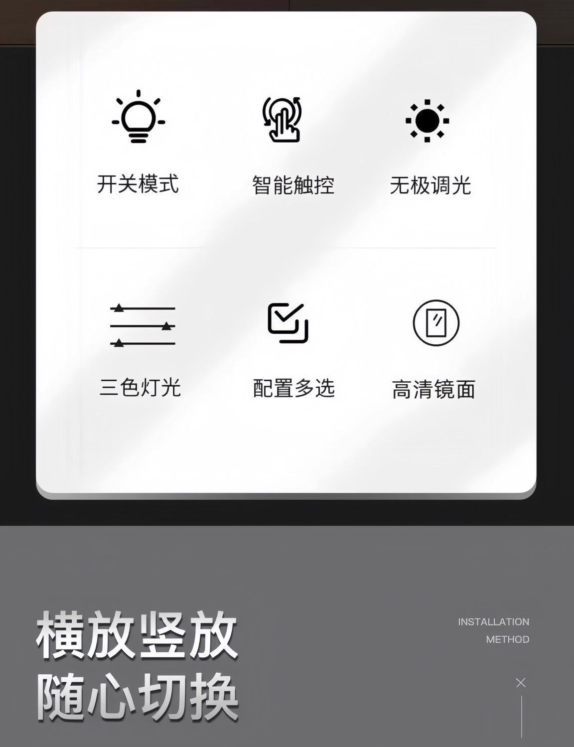 【Thickened Upgrade】Three-Color Light + Defogging Dual Touch + Stepless Dimming