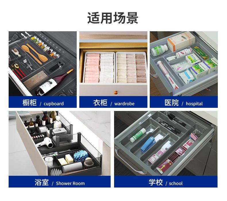 Partición simple para cajón de cocina, bandeja de almacenamiento para cubiertos, cuchillos y tenedores incorporada, cuchara, utensilios de cocina, tazón, palillos, bandeja de almacenamiento al por mayor