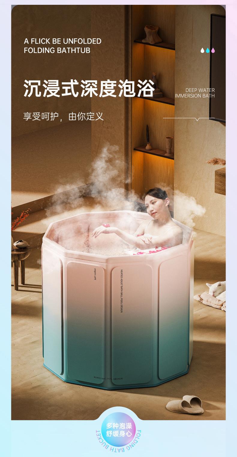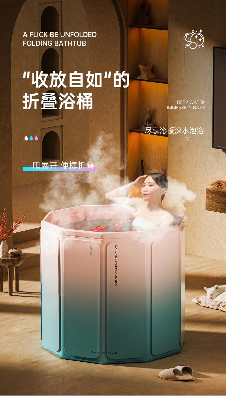 Bañera de Inmersión Adultos Niños Baño Sin Instalación Plegable Portátil Doméstico PVC Bebé Natación Bañera Elevada