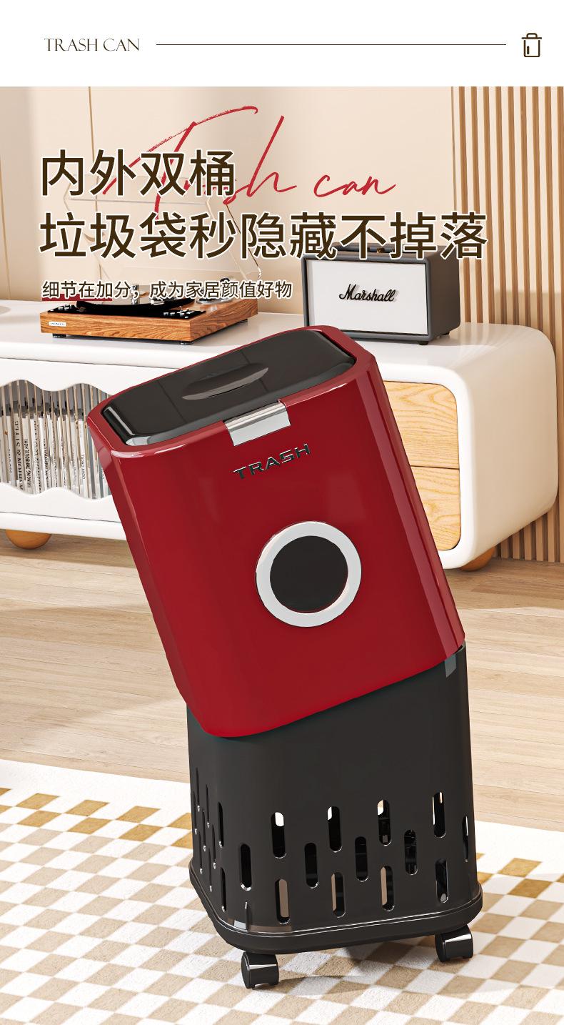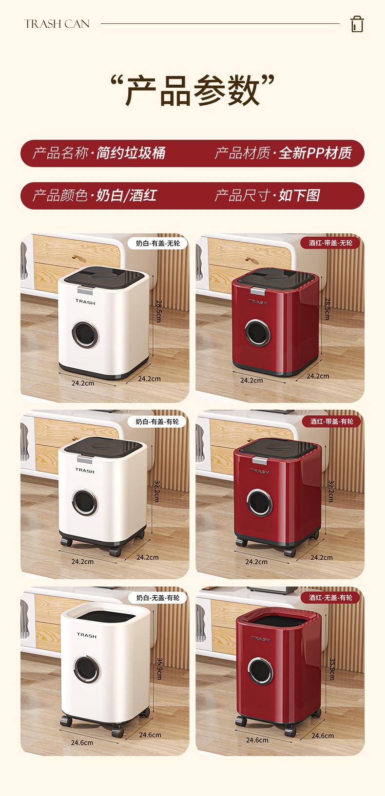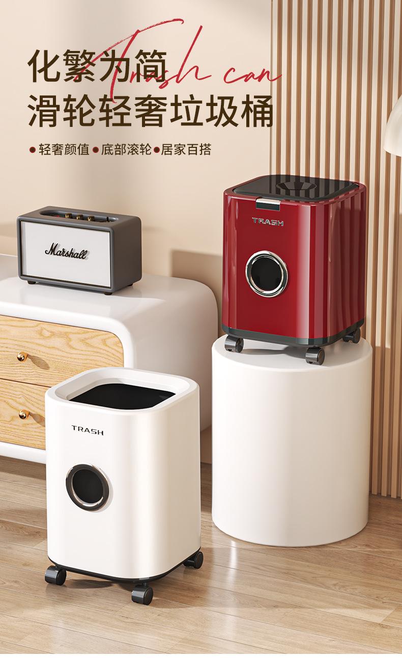 Bote de Basura Doméstico para Sala de Estar, Gran Capacidad, Lujo Ligero, Gama Alta, Alta Apariencia, Modelo Nuevo 2025 con Ruedas, para Dormitorio y Cocina, con Tapa