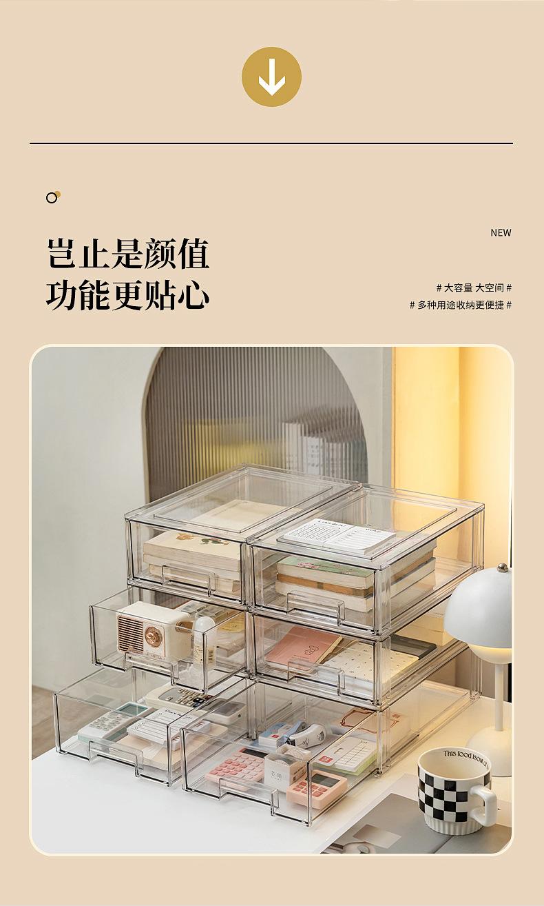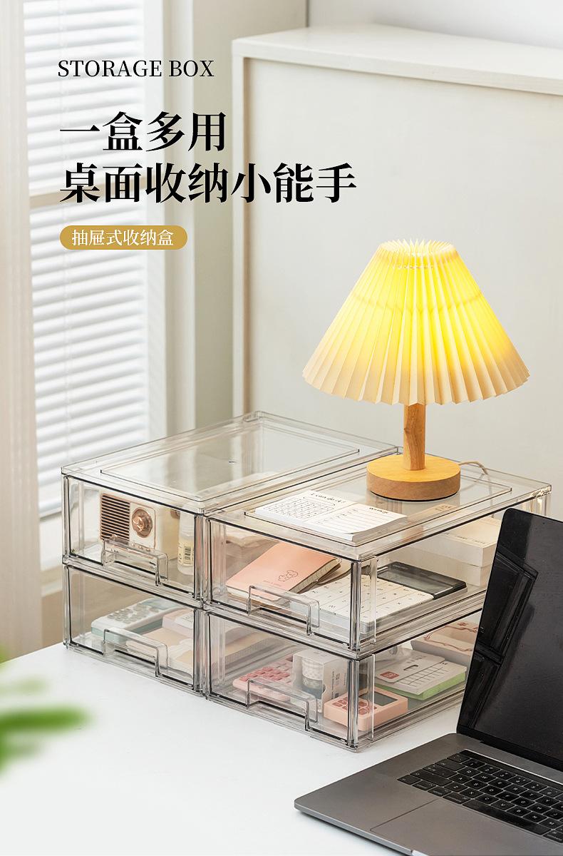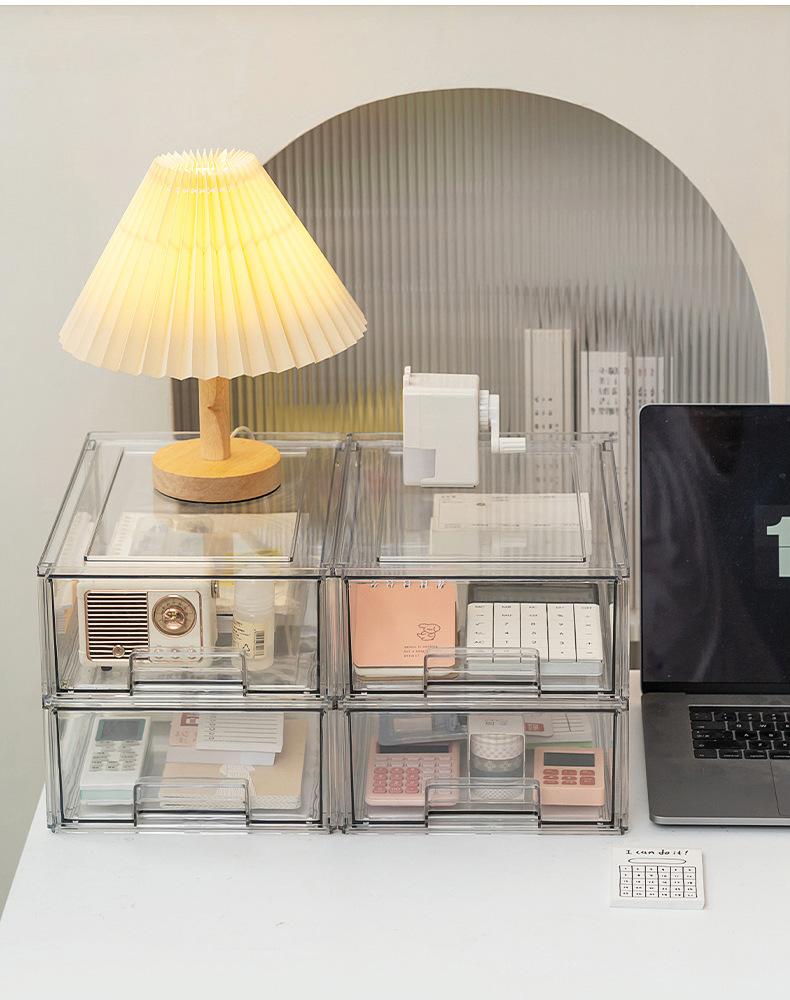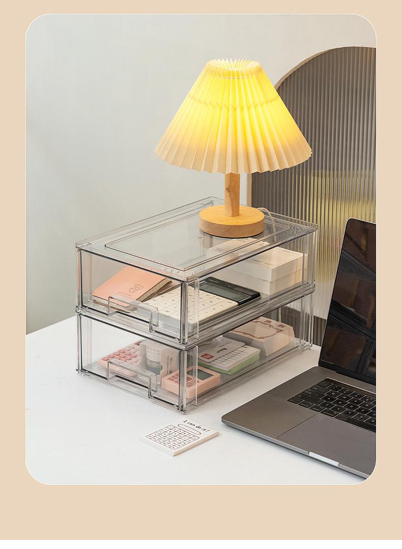 Caja de Almacenamiento de Escritorio con Cajón Apilable Transparente Clasificación de Papelería Desorden Organizador de Desorden Dormitorio de Estudiante
