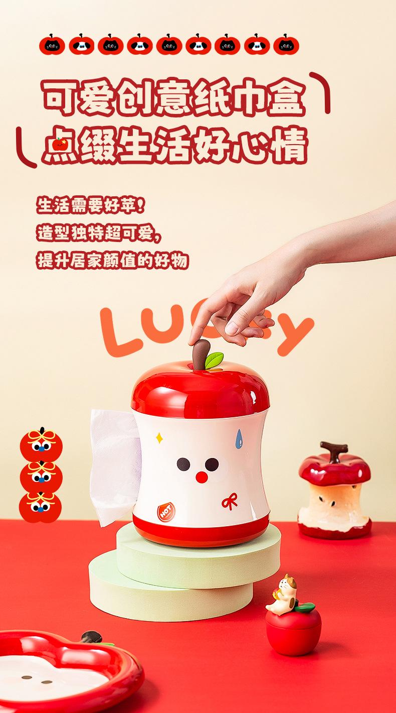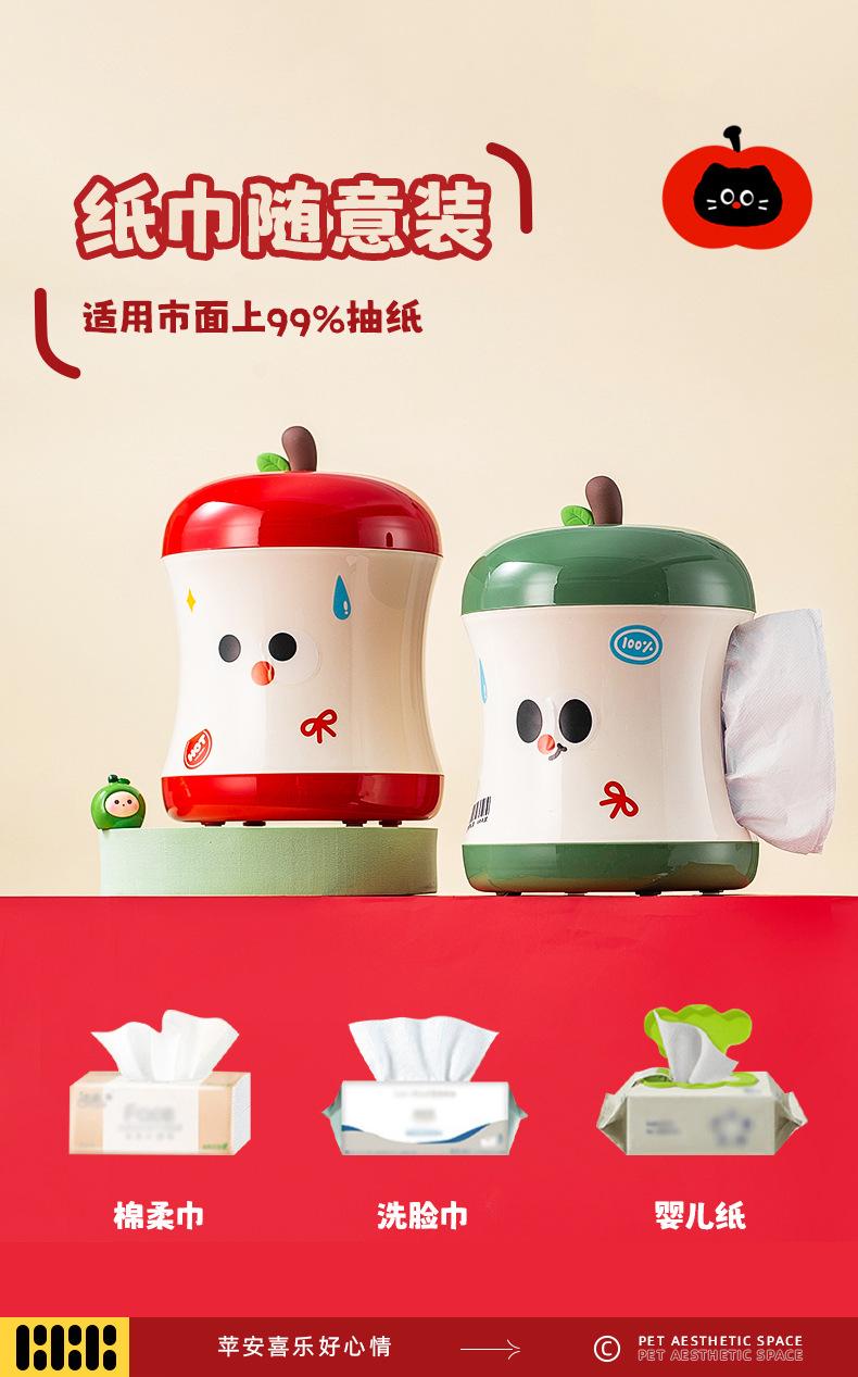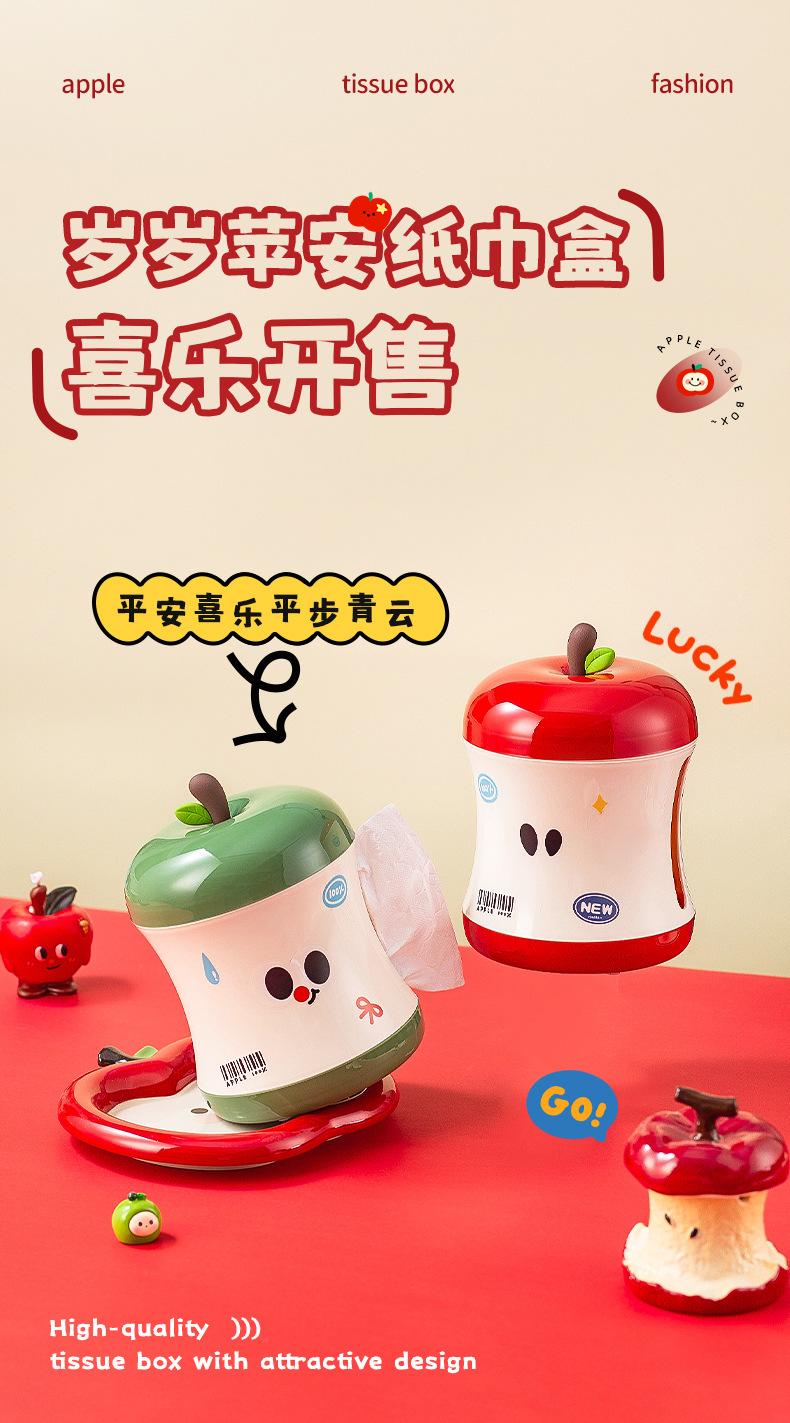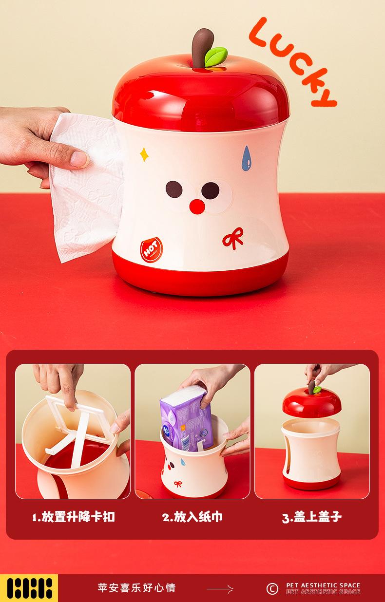 Caja de Pañuelos de Manzana Creativa de Dibujos Animados Adorno para Sala de Estar Doméstico Decoración de Escritorio Caja de Papel para Dibujar Almacenamiento para el Hogar Transfronterizo
