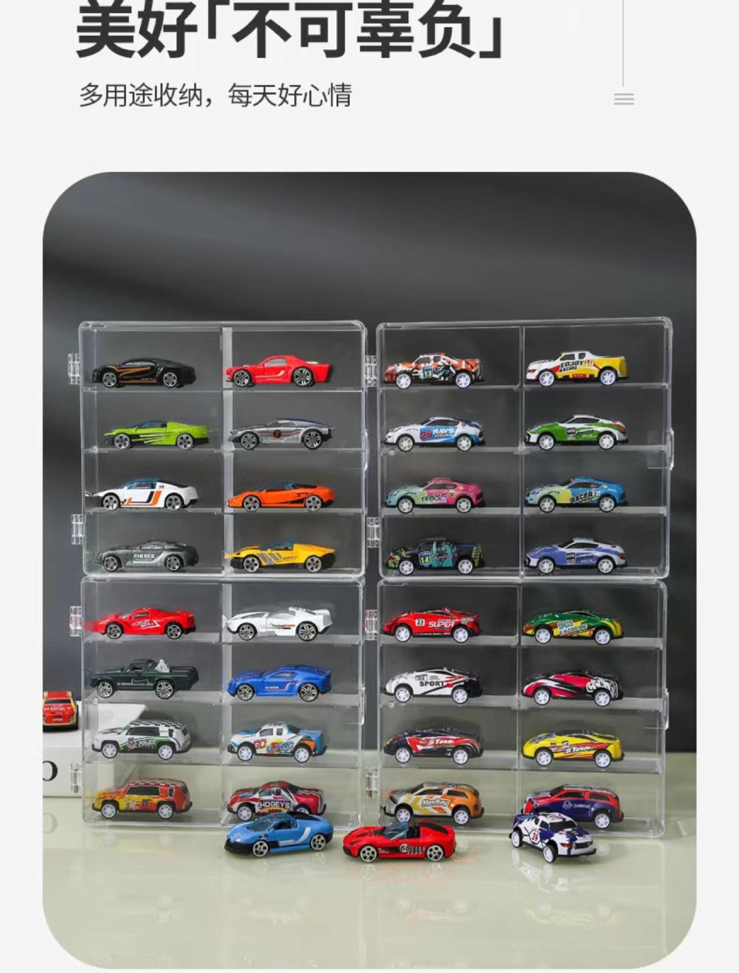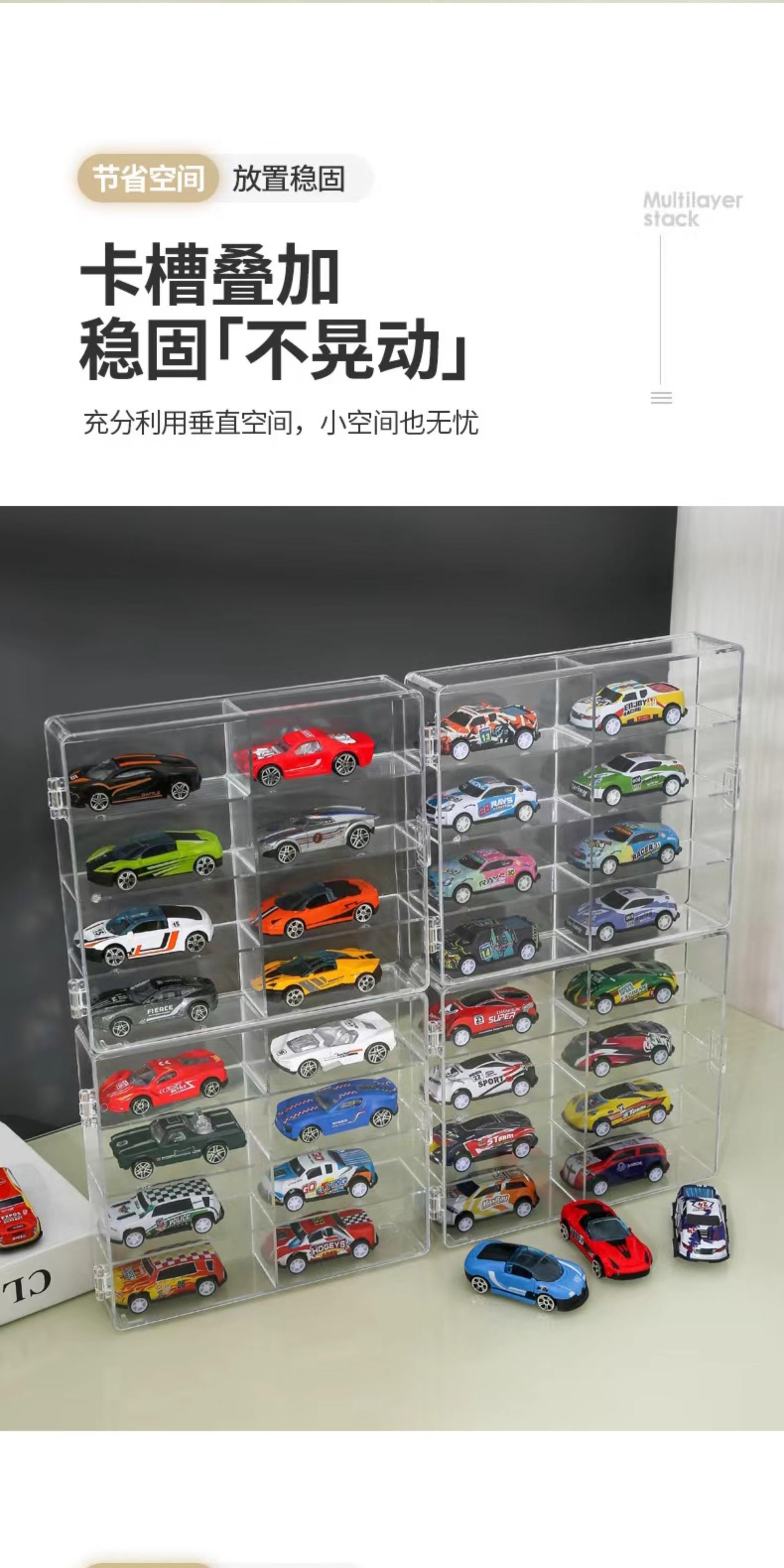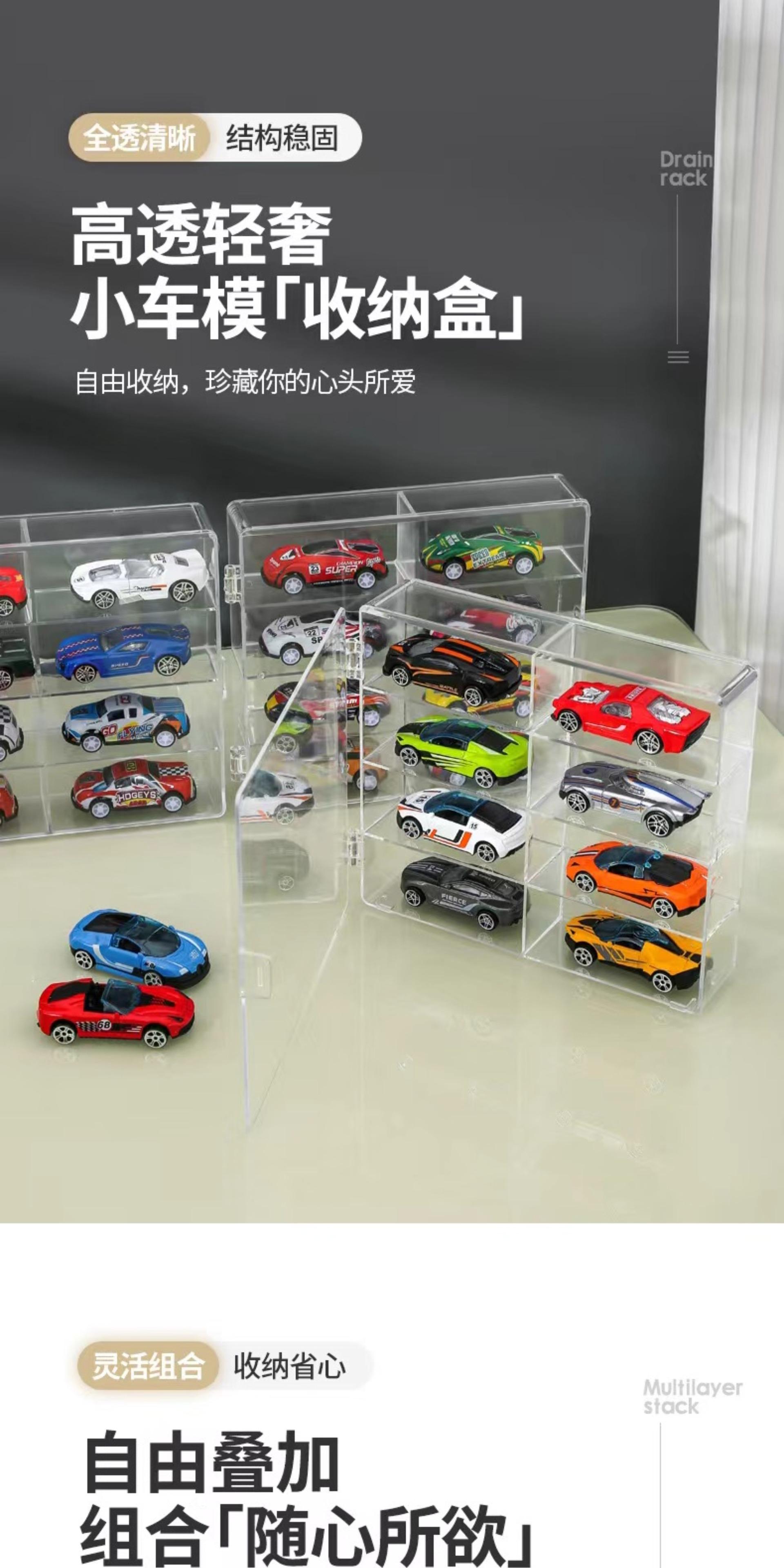 Caja de almacenamiento para coches de juguete para niños 1:Caja Multicapa Antipolvo para Modelos de Autos 64 Modelo Tomica Vitrina de Exhibición de Almacenamiento Transparente