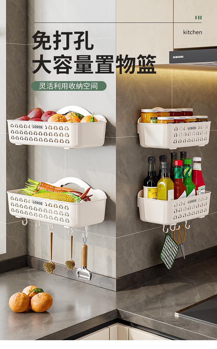 Estante de almacenamiento de cebolla, jengibre y ajo para cocina, montado en la pared, cesta de almacenamiento sin perforaciones, cesta de almacenamiento de verduras multifuncional variada, fruta