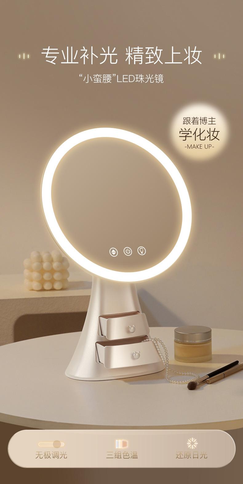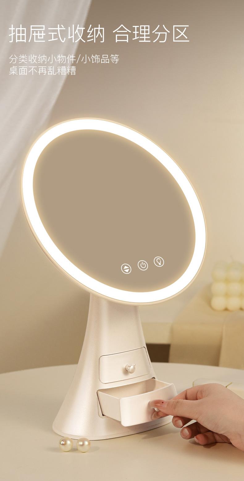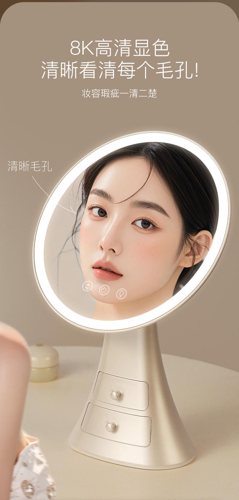 Espejo de Maquillaje con Luces Dormitorio de Estudiantes Escritorio Mesa Caja de Almacenamiento Espejo de Tocador Integrado Espejo LED de Alta Definición con Luz de Relleno