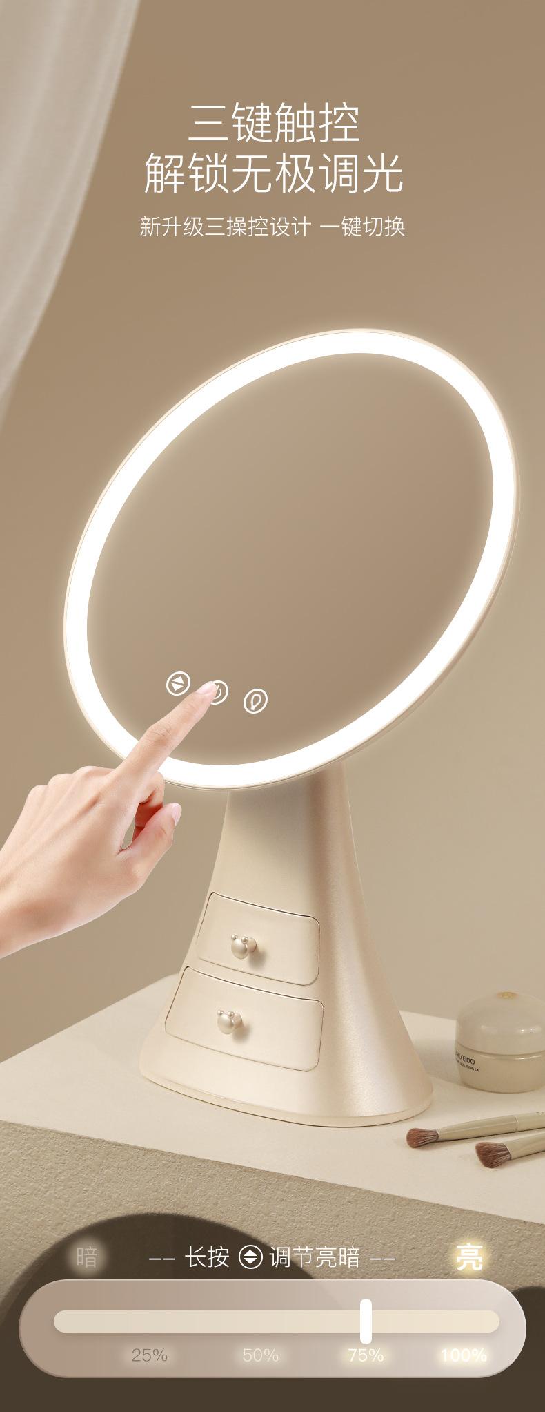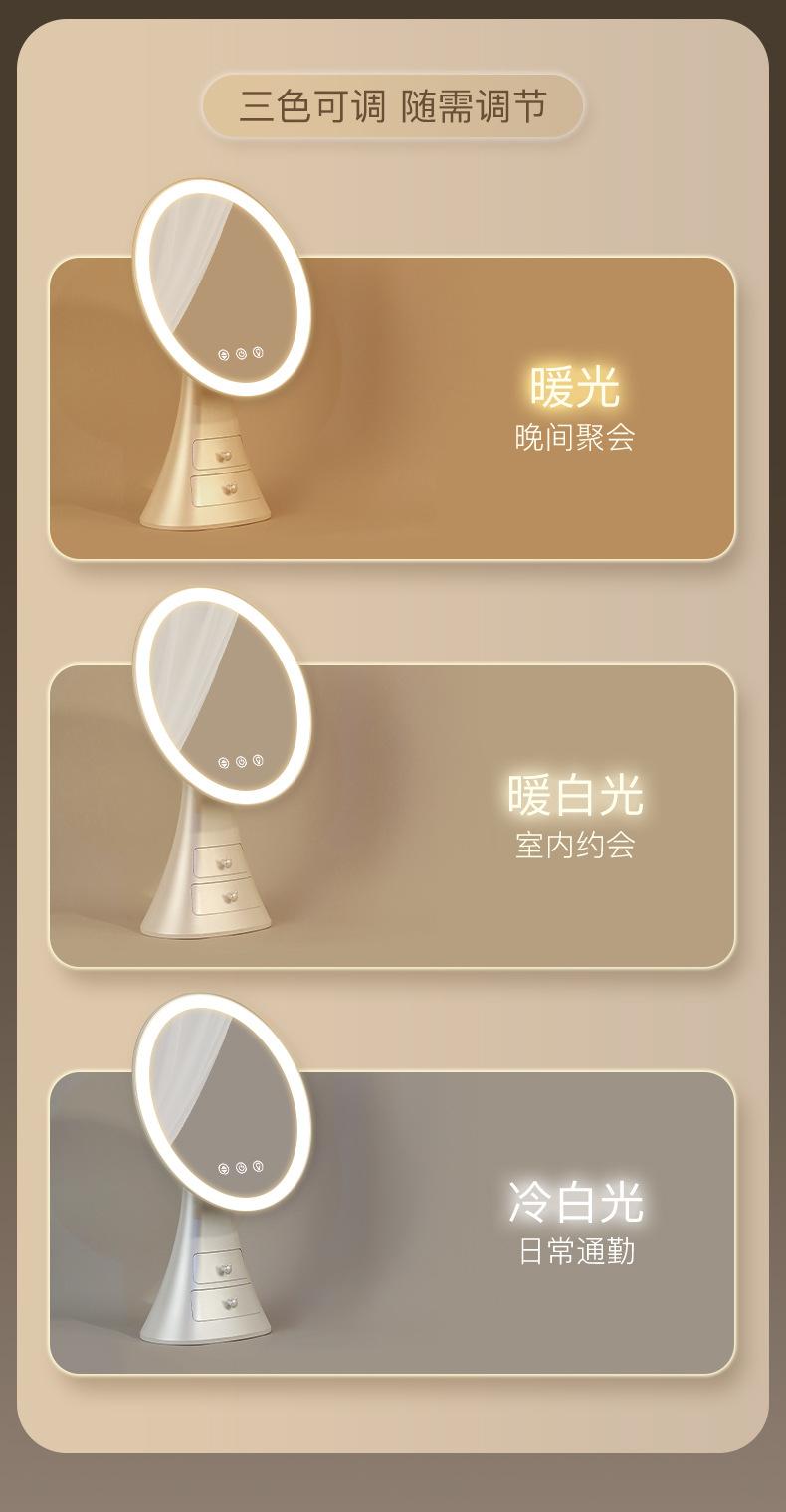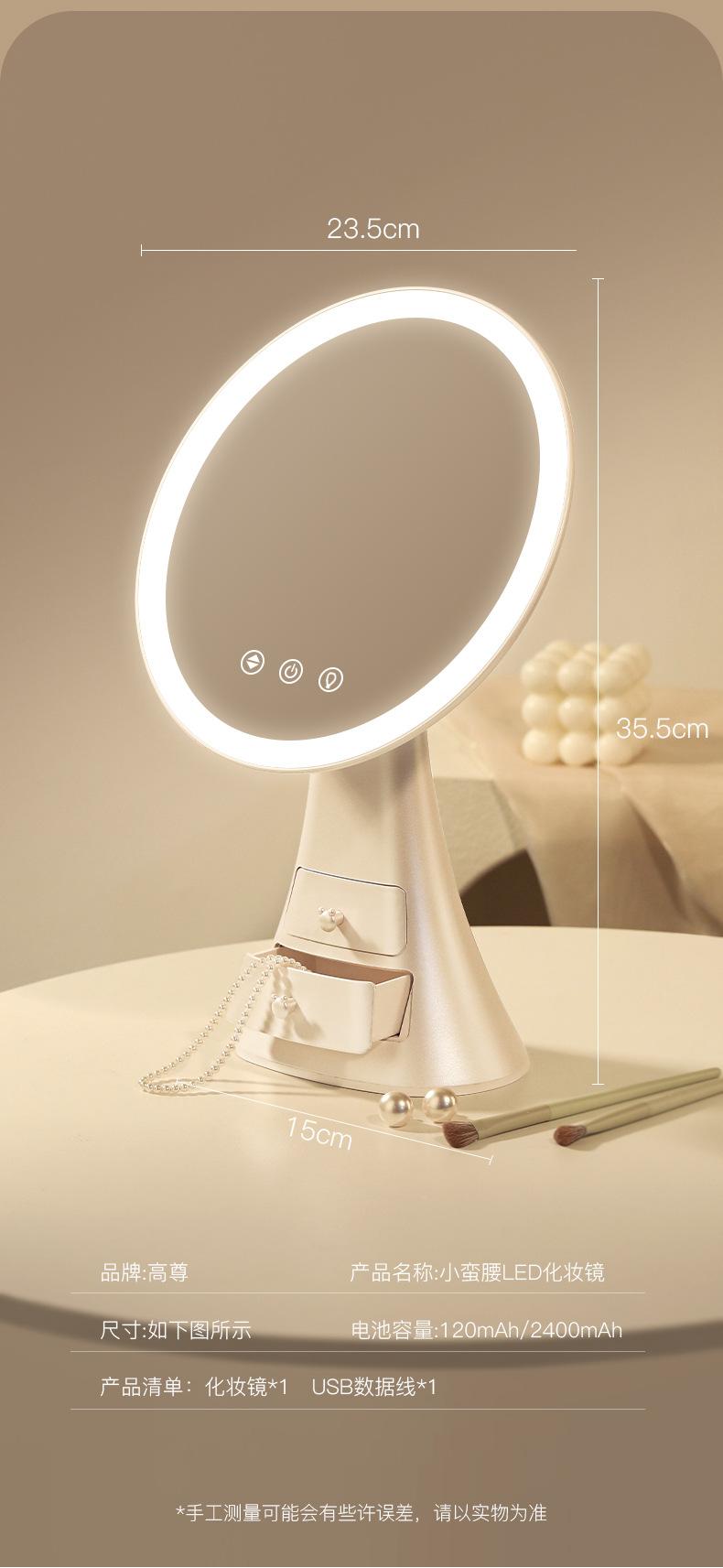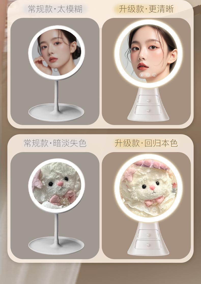 Espejo de Maquillaje con Luces Dormitorio de Estudiantes Escritorio Mesa Caja de Almacenamiento Espejo de Tocador Integrado Espejo LED de Alta Definición con Luz de Relleno