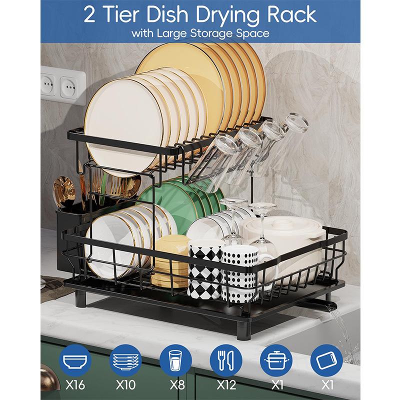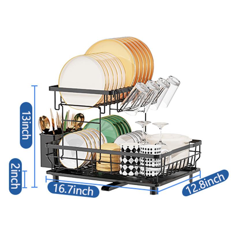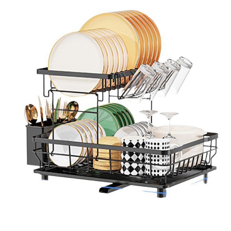 Escurridor de platos doble capa transfronterizo de Amazon, estante de almacenamiento de cocina, estante para tazones, escurridor, estante de almacenamiento para tazones y platos para el hogar, encimera