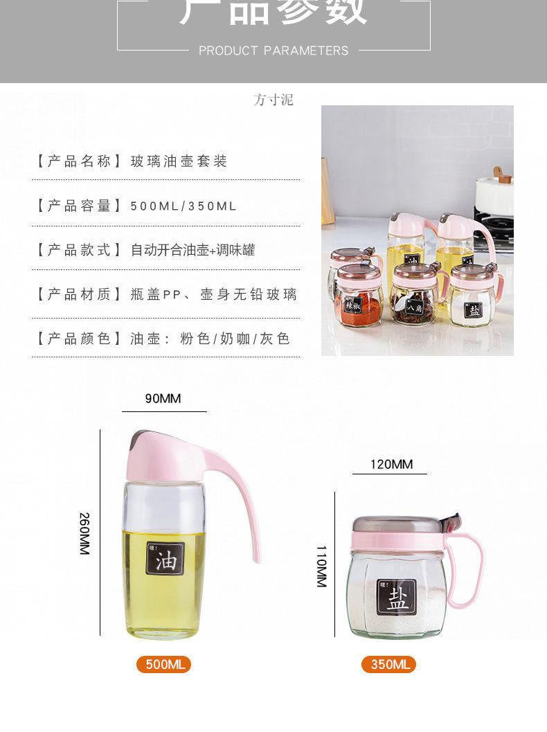 Frasco sazonador doméstico salero caja de condimentos MSG juego combinado cocina salsa de soya botella de aceite de vidrio a prueba de fugas