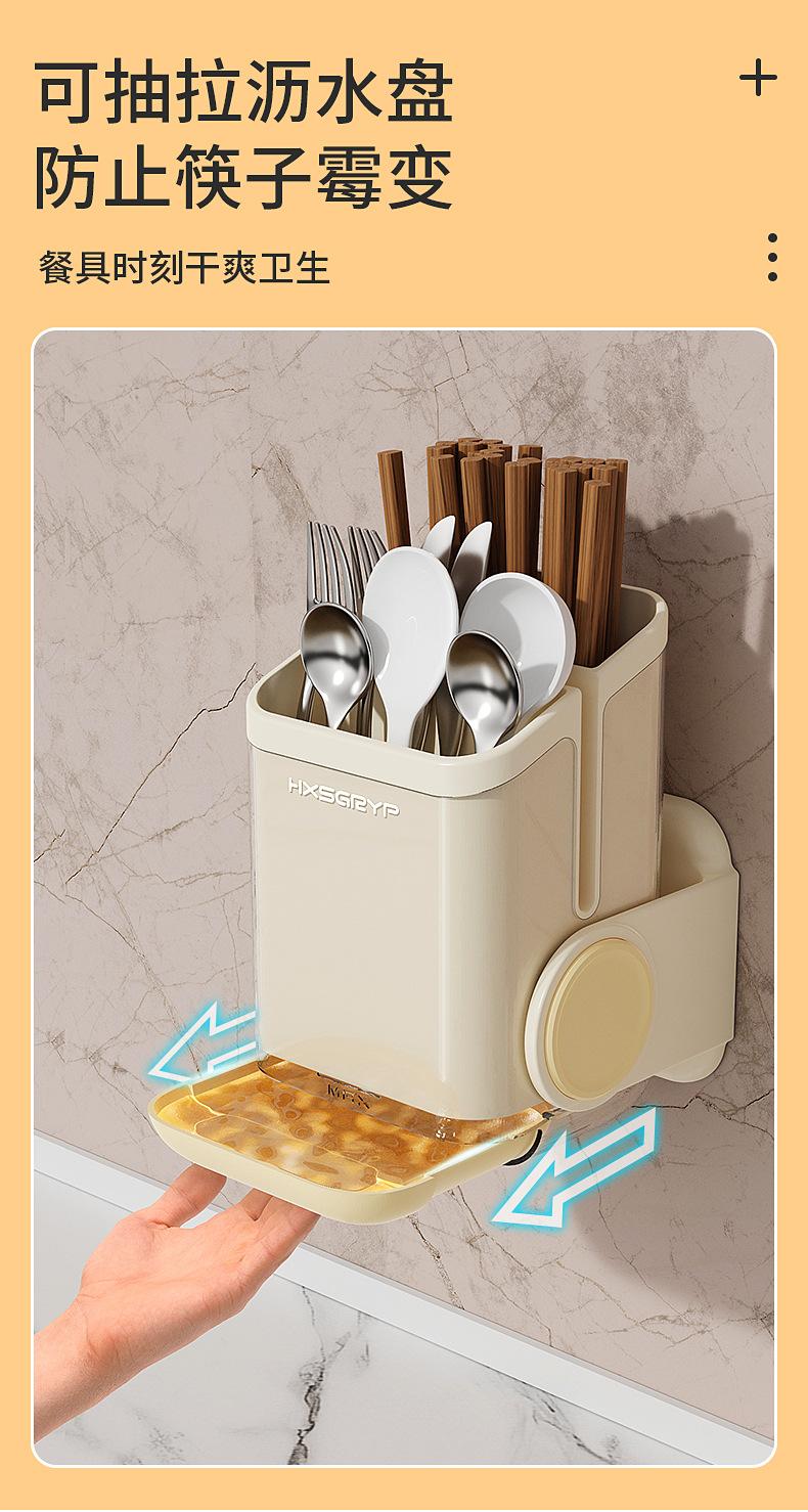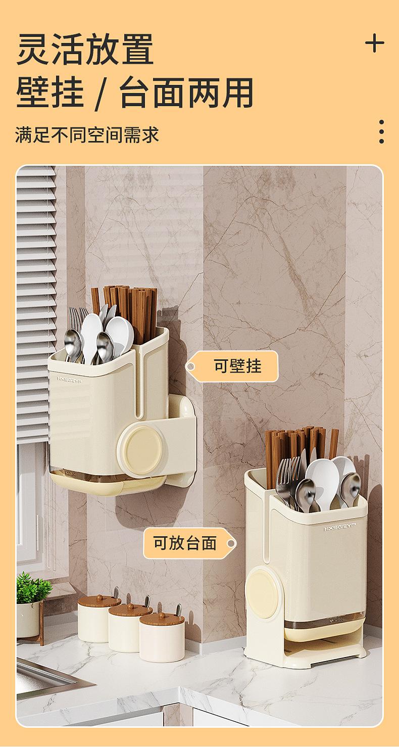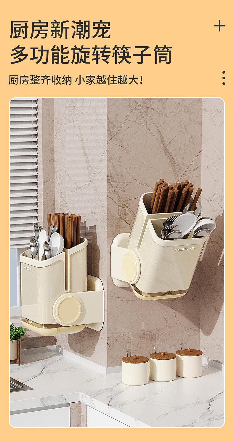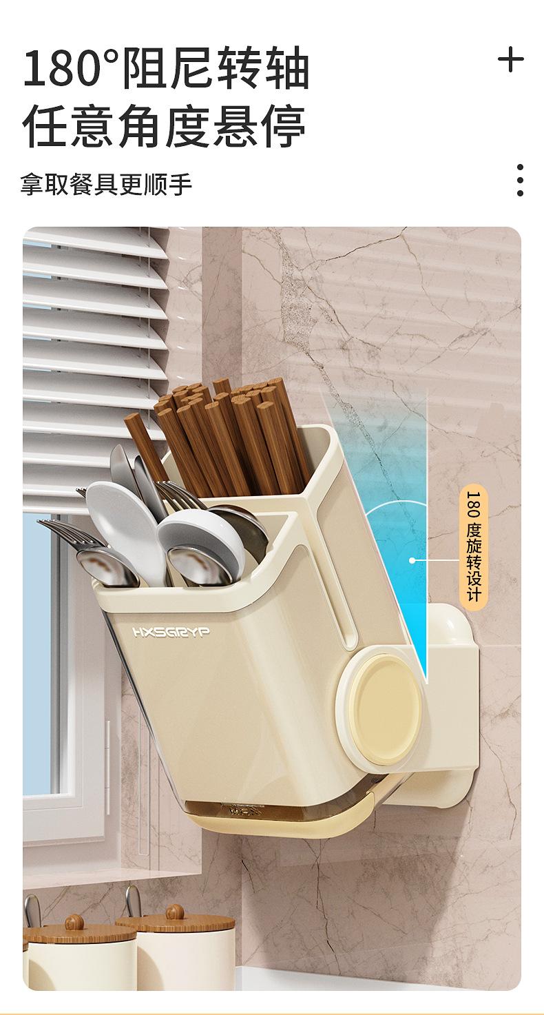 Estante para Cubiertos de Cocina Montado en la Pared Sin Perforaciones Caja de Almacenamiento de Palillos Encimera Pared Doble Uso Soporte para Palillos Giratorio