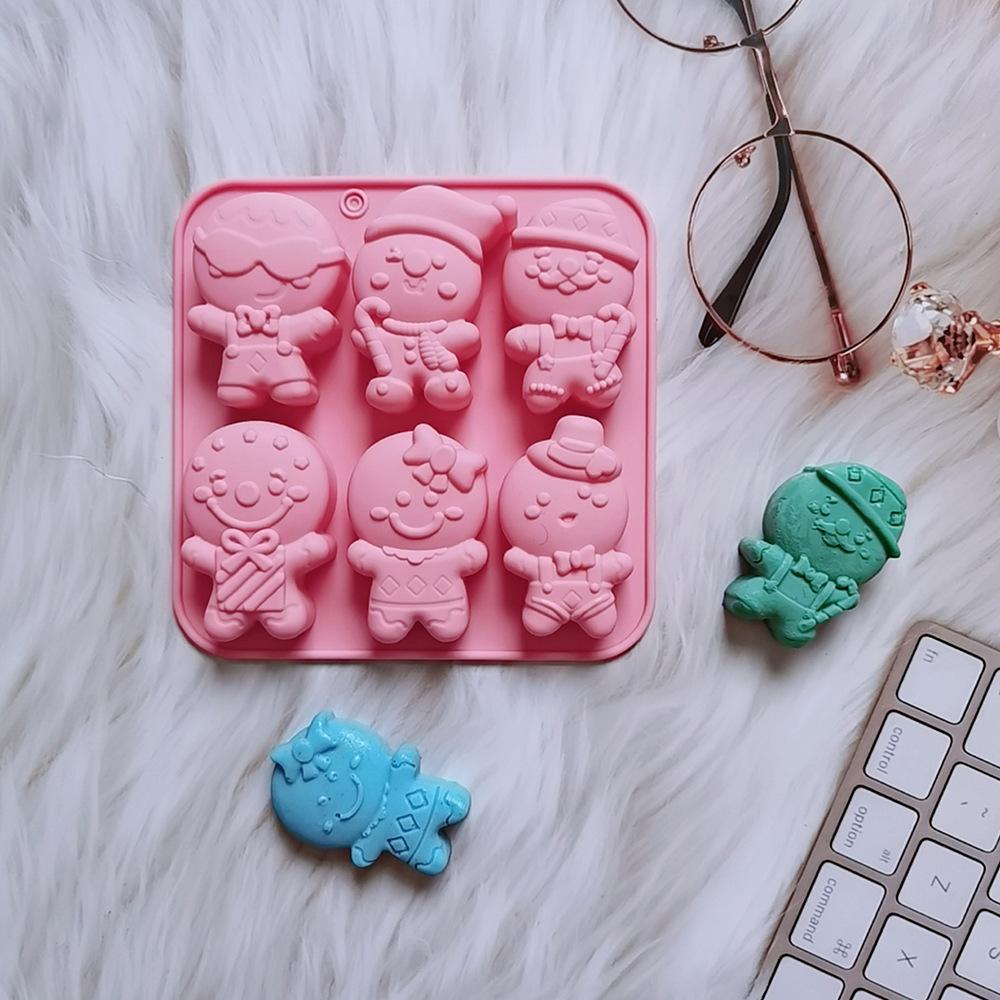 Molde de silicona para galletas de chocolate Pancake Man de 6 piezas, molde para dulces, pudín, postre, utensilios para hornear pasteles