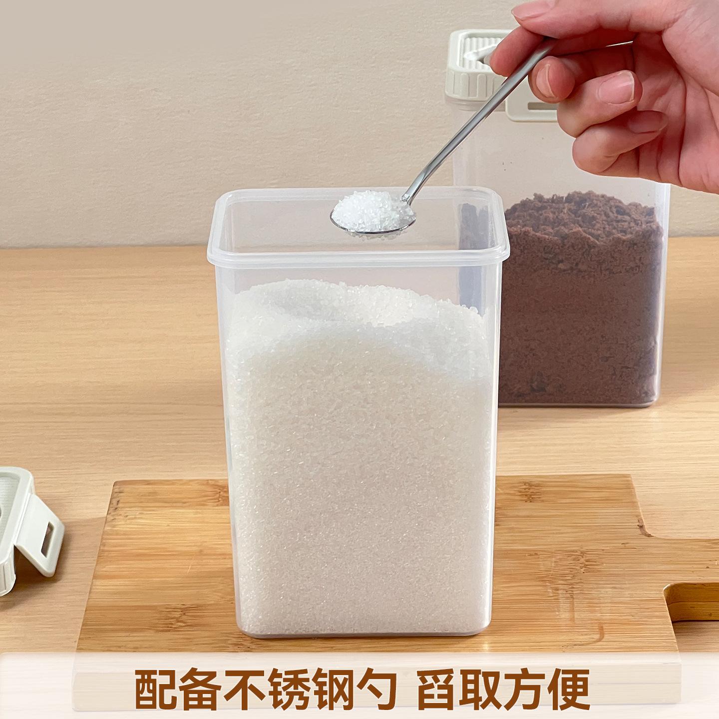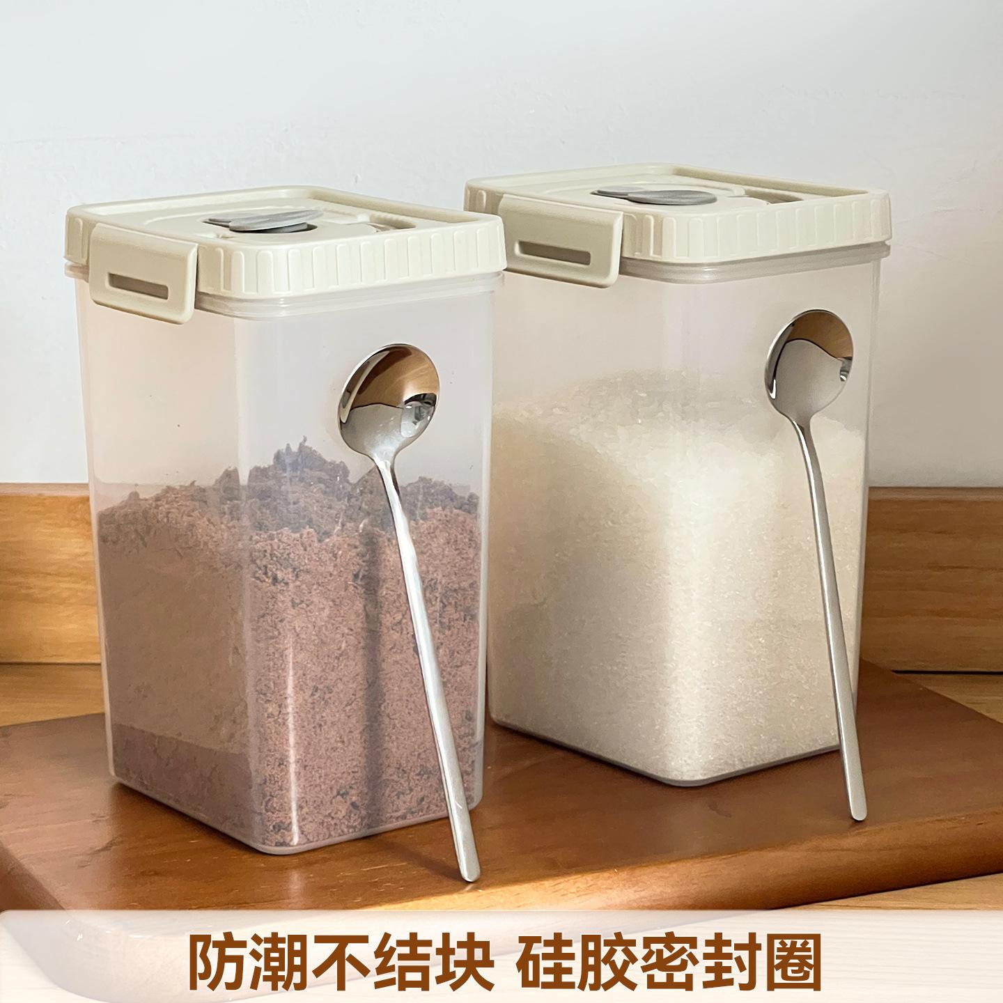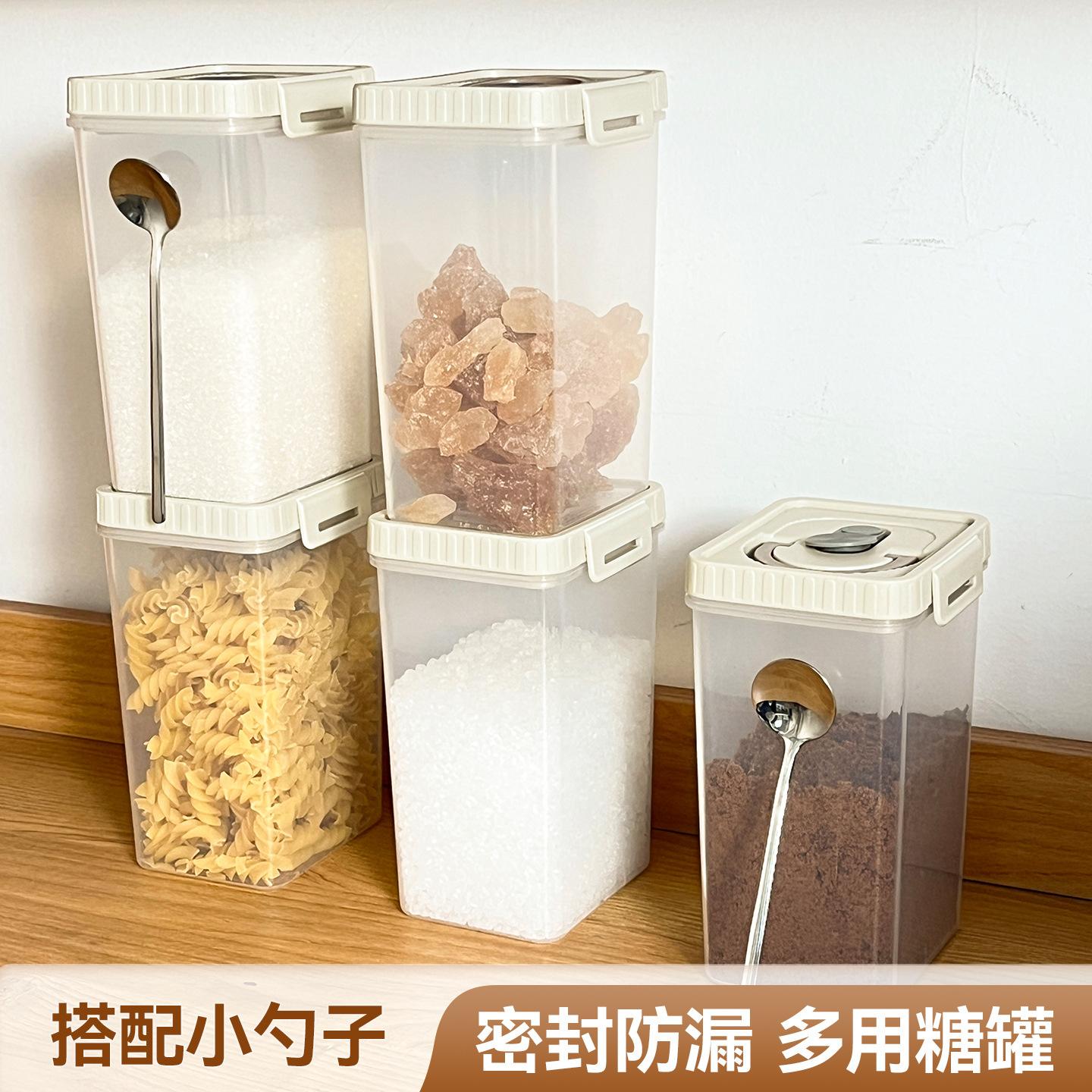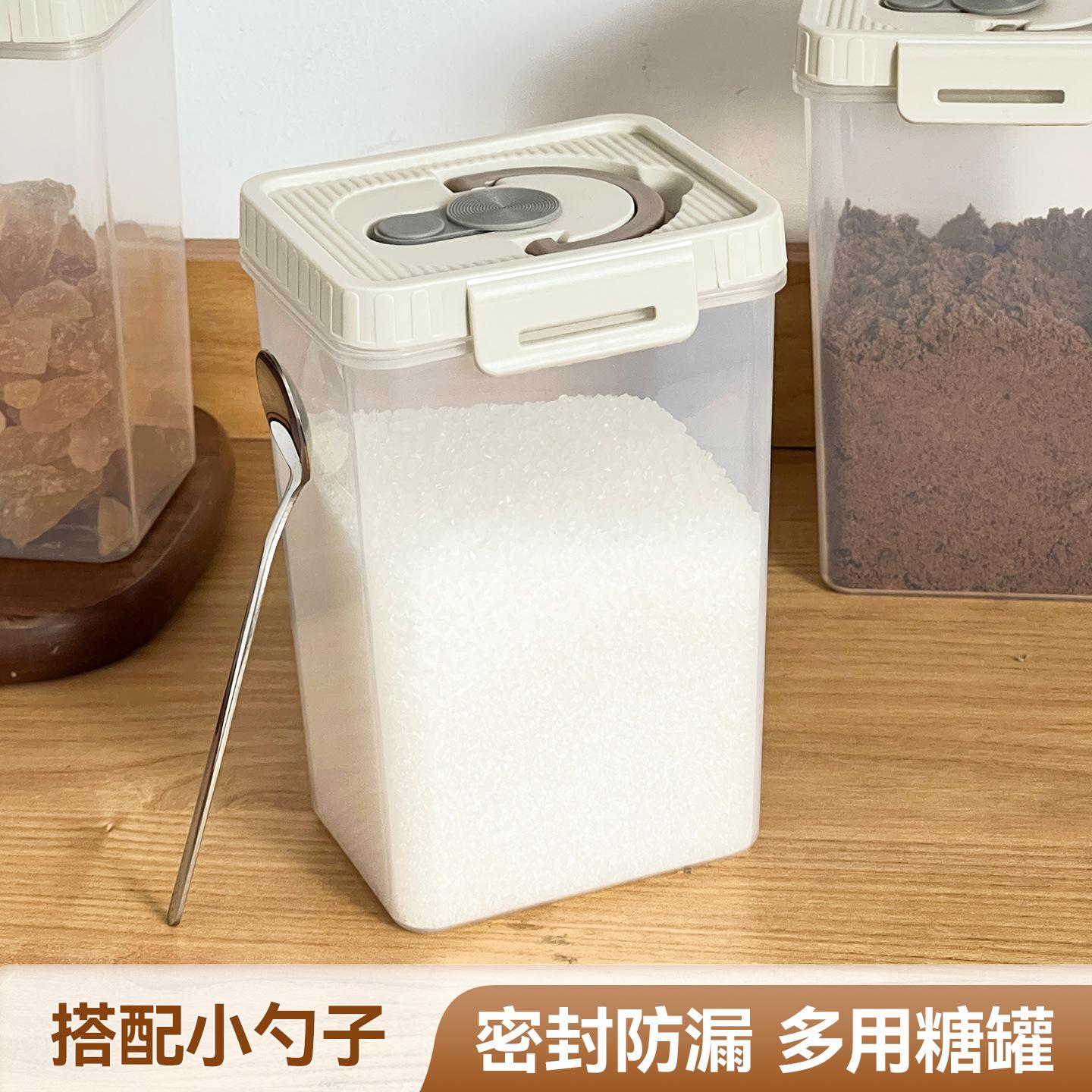 Compra Azucarera Cocina Azúcar Blanco Tarro de Almacenamiento Sellado Cuadrado Tarro para Condimentos Alimenticios Doméstico Tarro de Almacenamiento a Prueba de Humedad con Cuchara al por mayor en Joom.pro