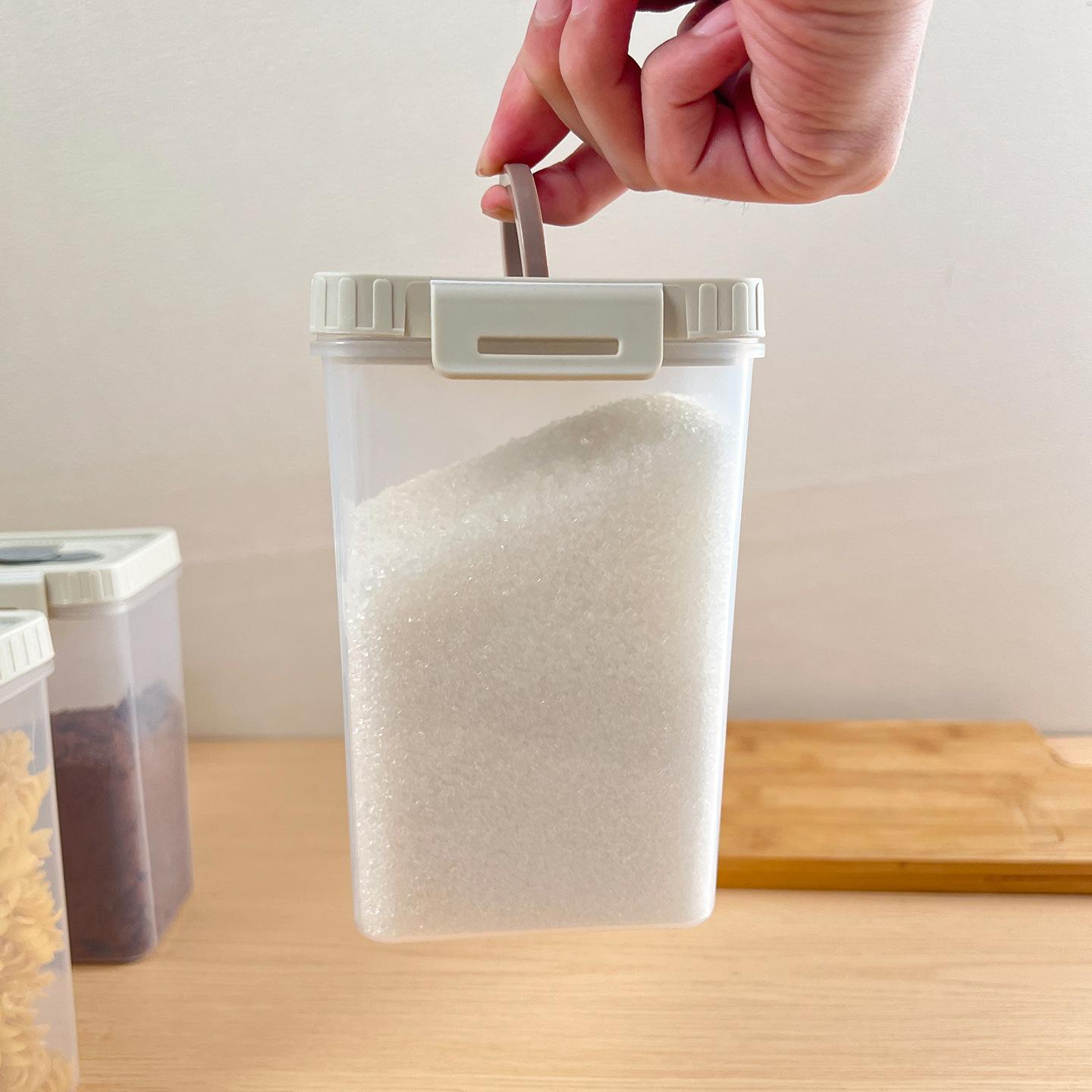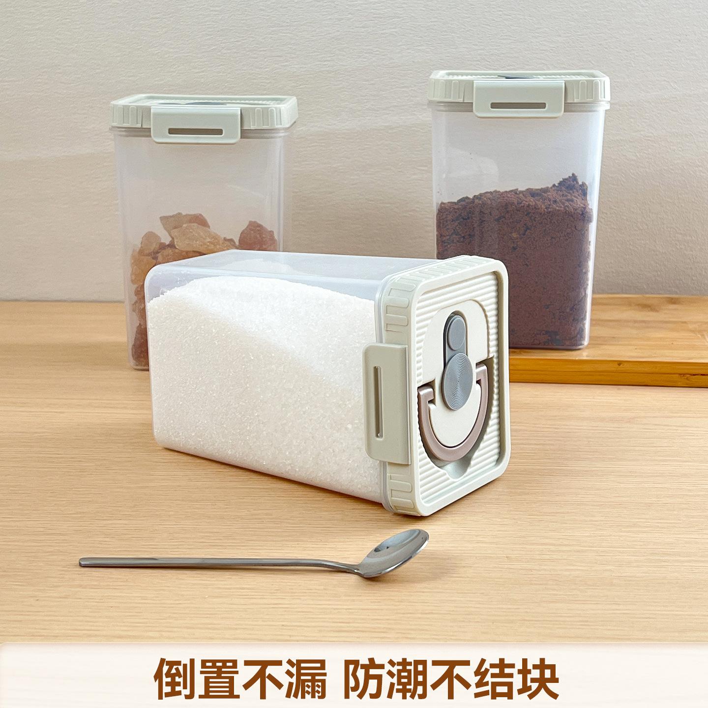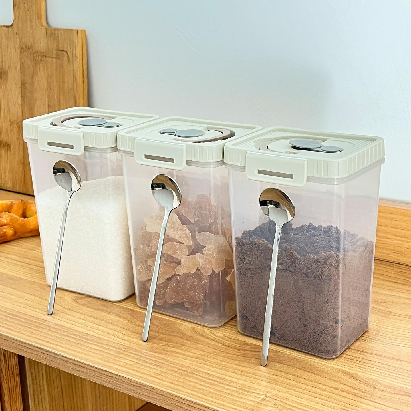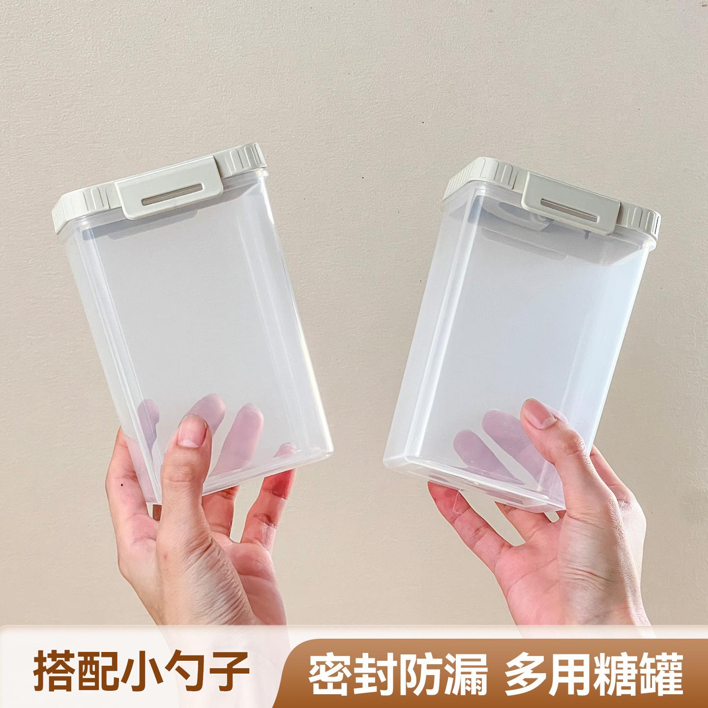 Compra Azucarera Cocina Azúcar Blanco Tarro de Almacenamiento Sellado Cuadrado Tarro para Condimentos Alimenticios Doméstico Tarro de Almacenamiento a Prueba de Humedad con Cuchara al por mayor en Joom.pro