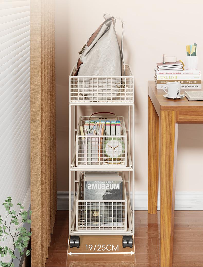 Estante de almacenamiento para mochilas, carrito pequeño móvil, estante extraíble para guardar libros, artefacto doméstico multicapa, gabinete rodante debajo de la mesa