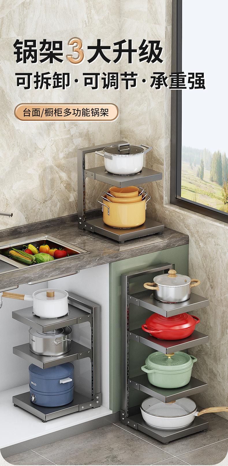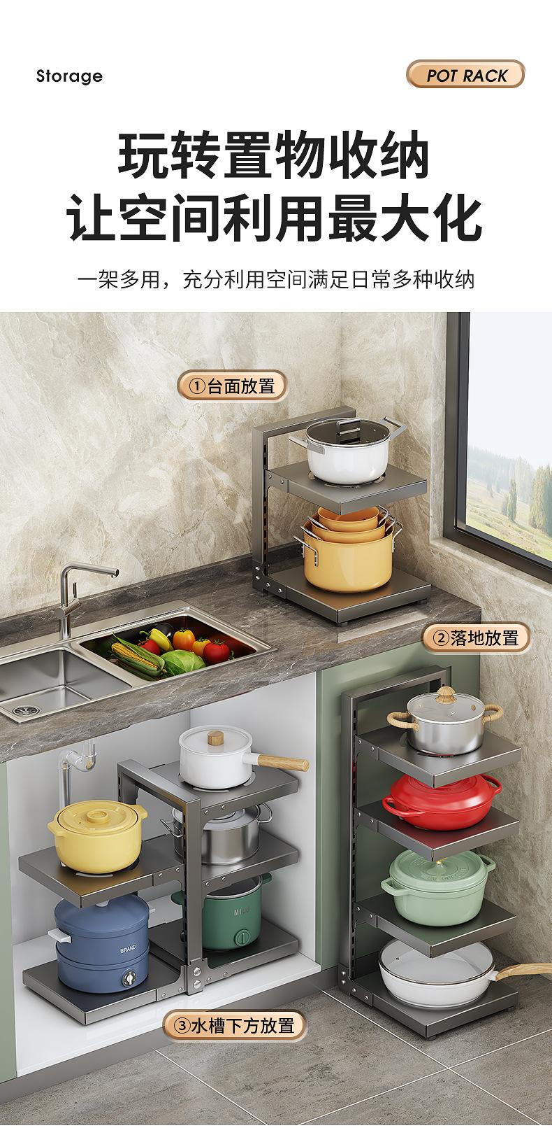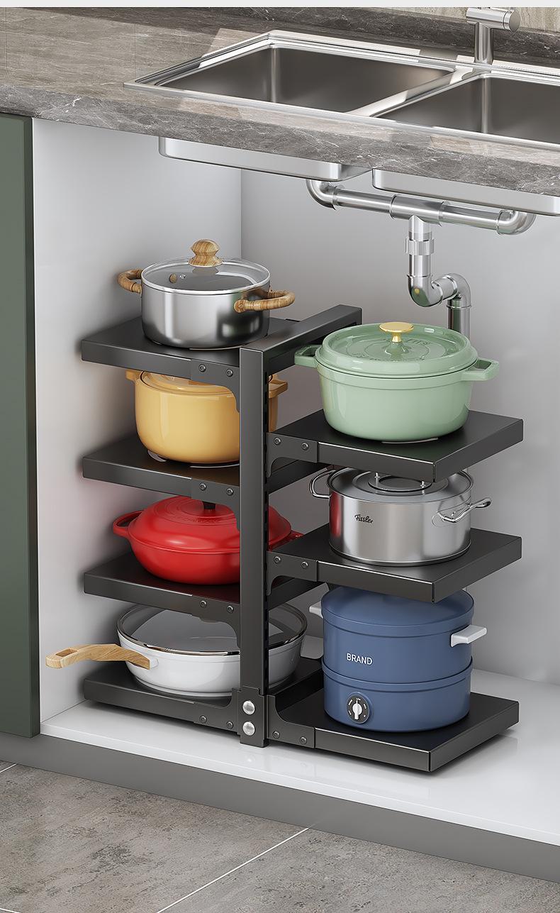 Estante de Almacenamiento de Cocina Doméstico de Piso Multicapa Estante de Almacenamiento para Ollas Multifuncional Bajo Fregadero Gabinete con Capas
