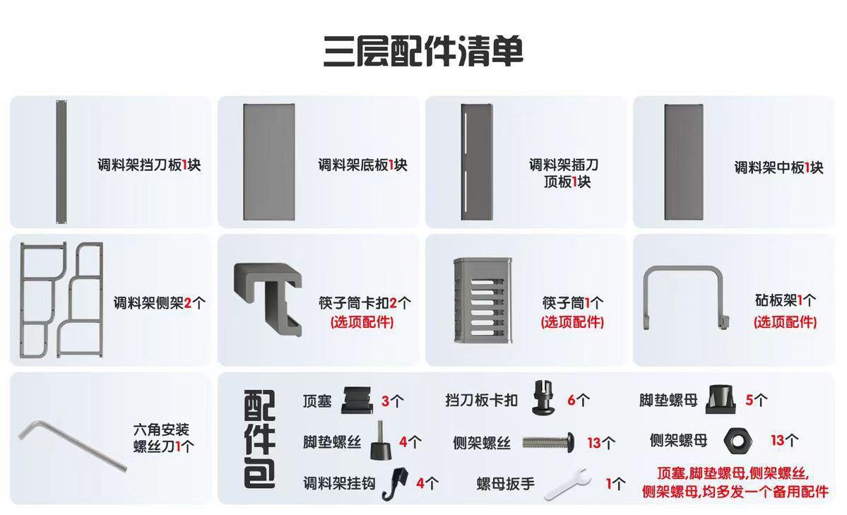 30CM black three-layer knife rack + hook 4