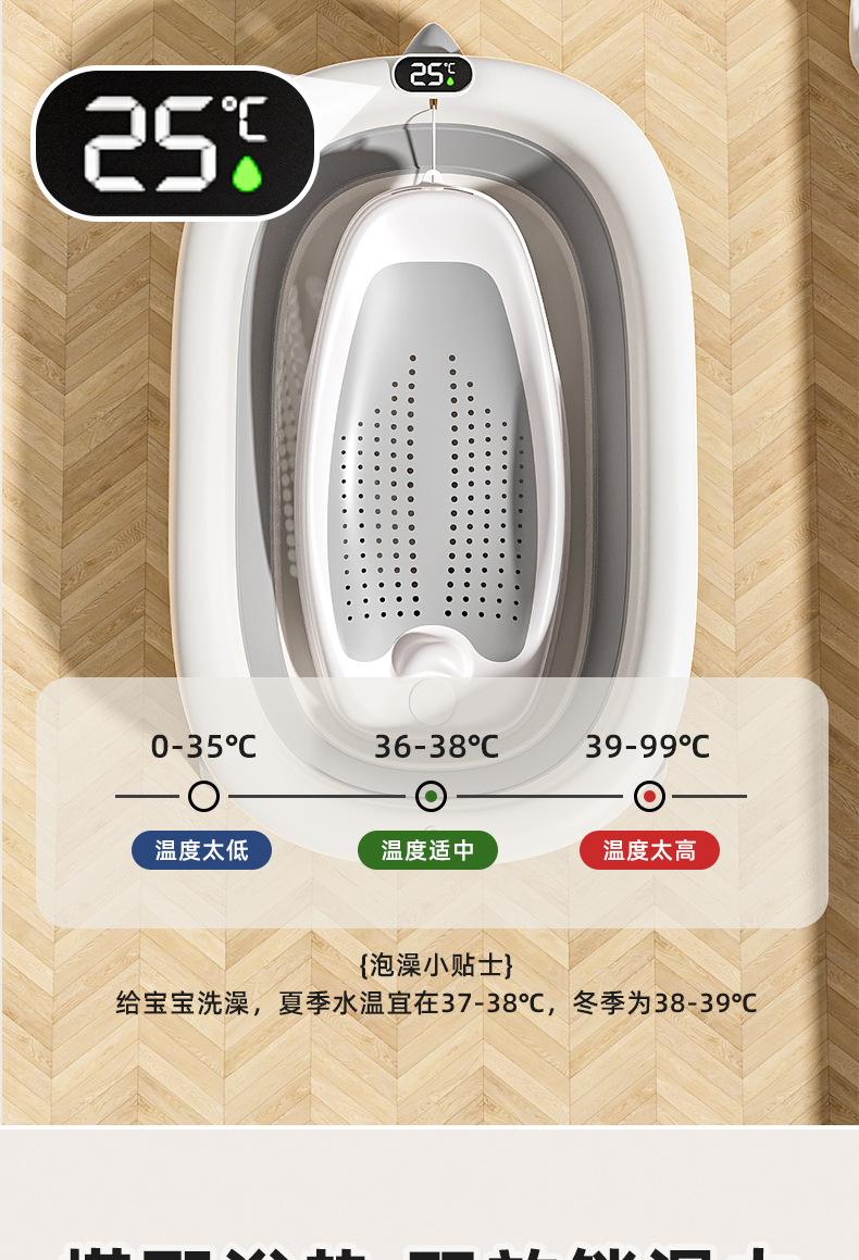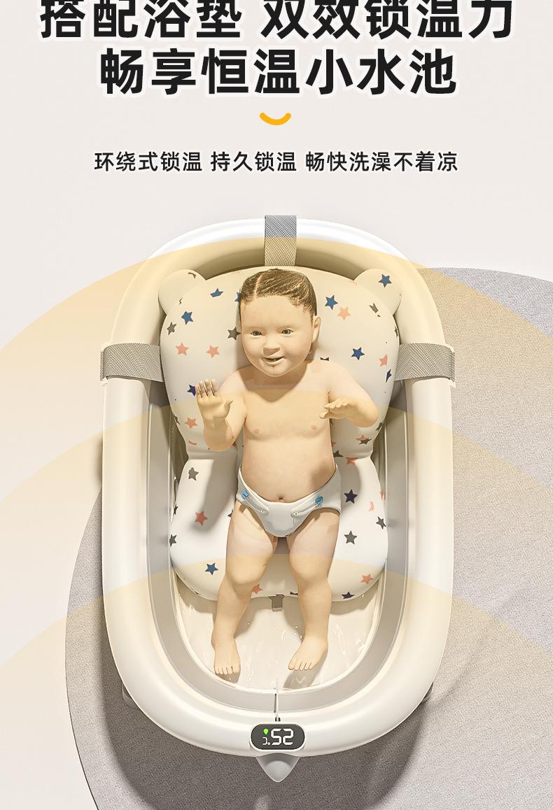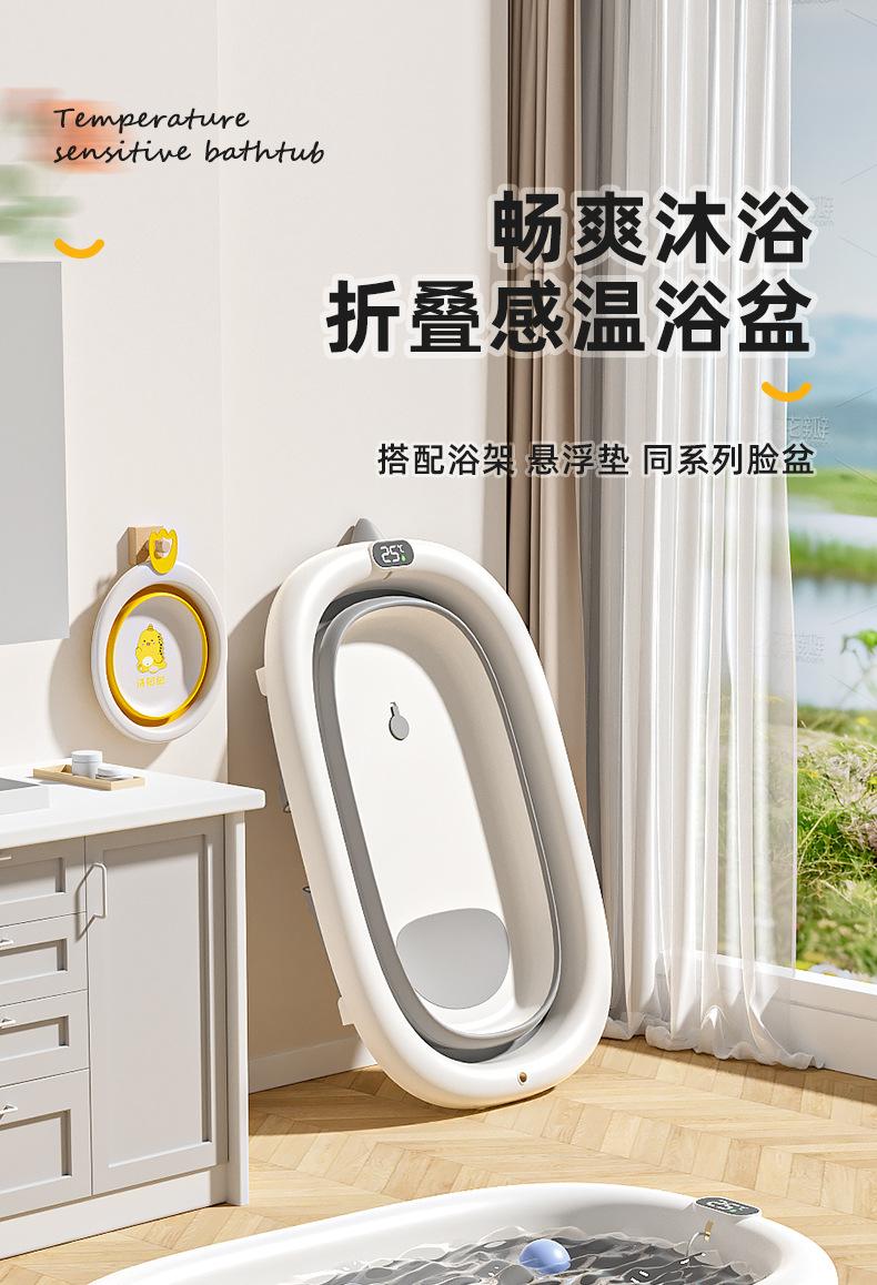 Bañera para Bebé Tamaño Grande Bañera Plegable para Bebé Sensora de Temperatura Cubeta de Baño para Niños Suministros para Recién Nacido Bañera Retráctil