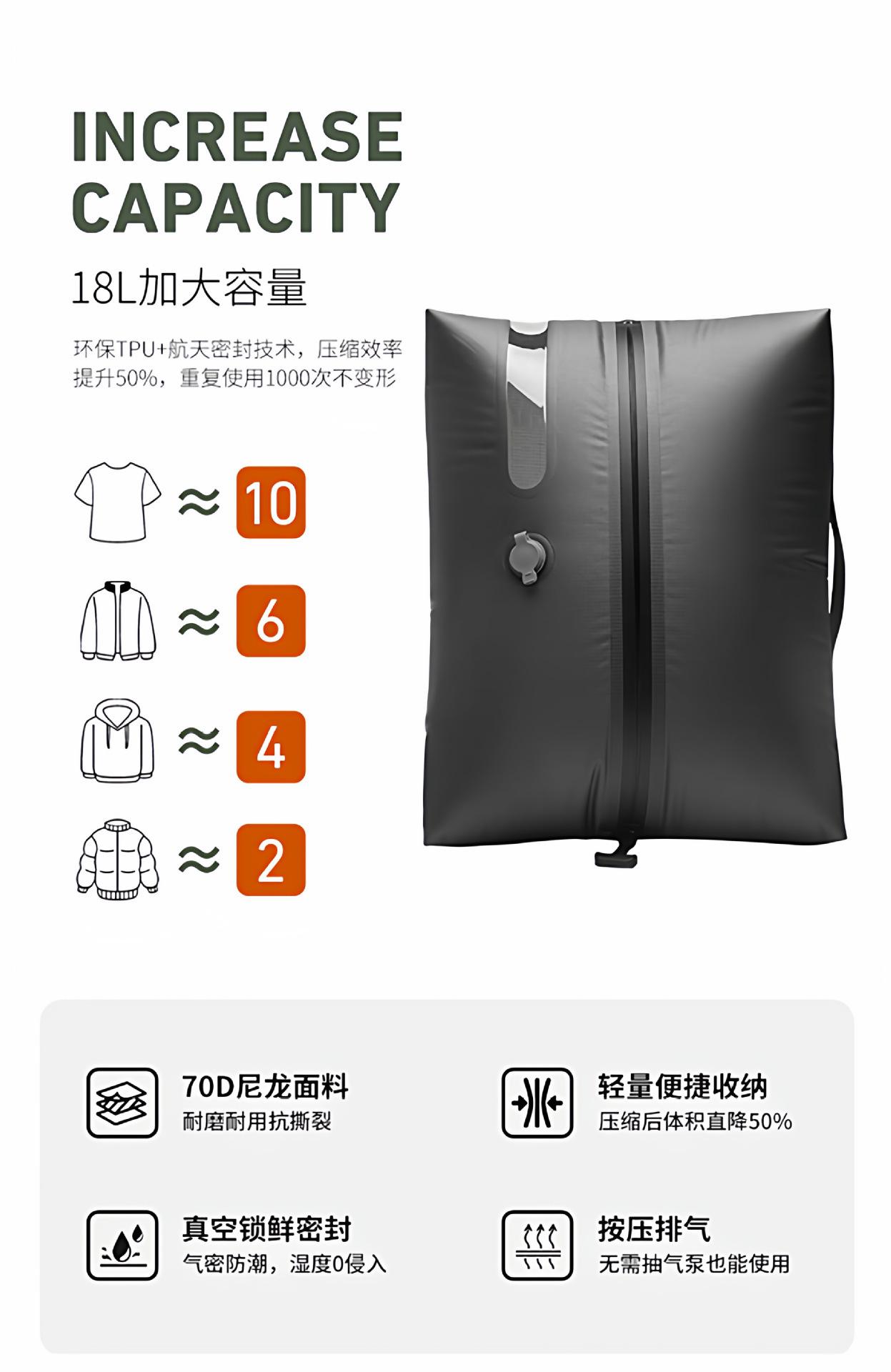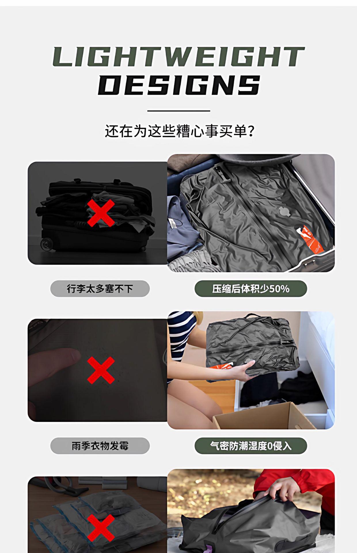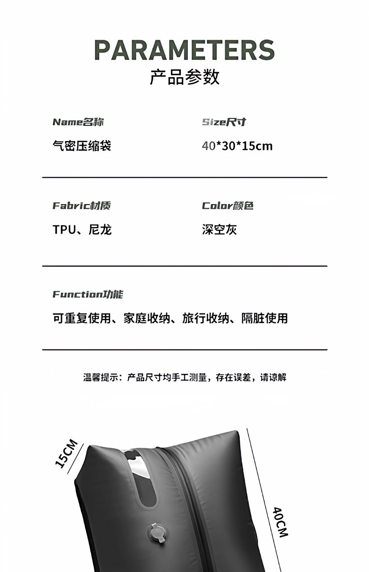Bolsa de Compresión al Vacío de Viaje de TPU Bolsa Hermética Impermeable a la Humedad para Viaje de Negocios Portátil Organizador de Ropa Almacenamiento con Cremallera