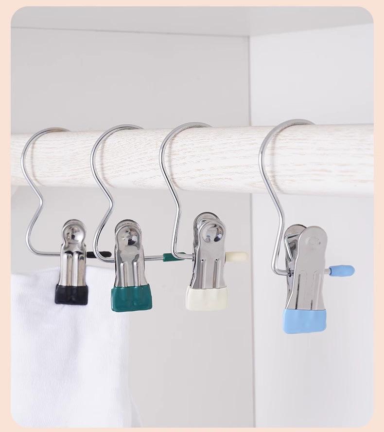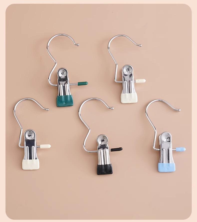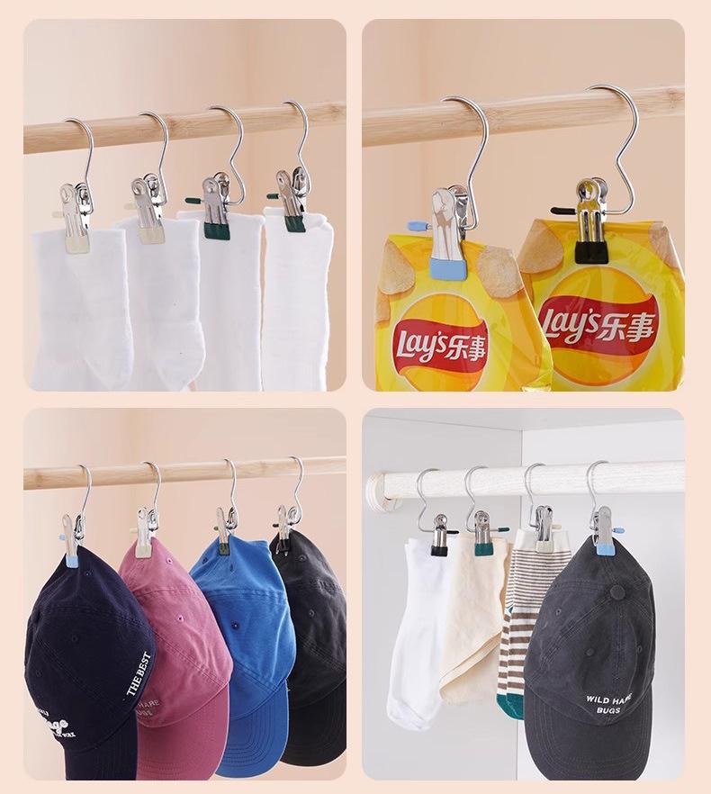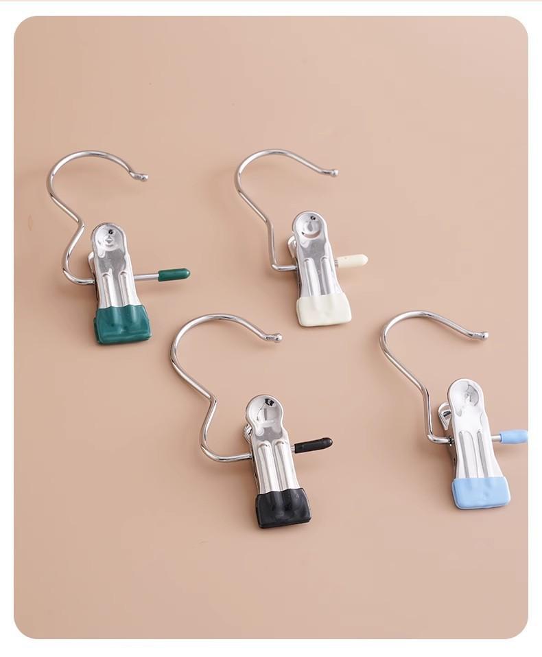Clip de Gancho de Acero Inoxidable Multifuncional Sin Marcas Toalla Sombrero Calcetines Cortavientos Clip para Pantalones con Gancho Clip de Almacenamiento Clip para Secar Ropa