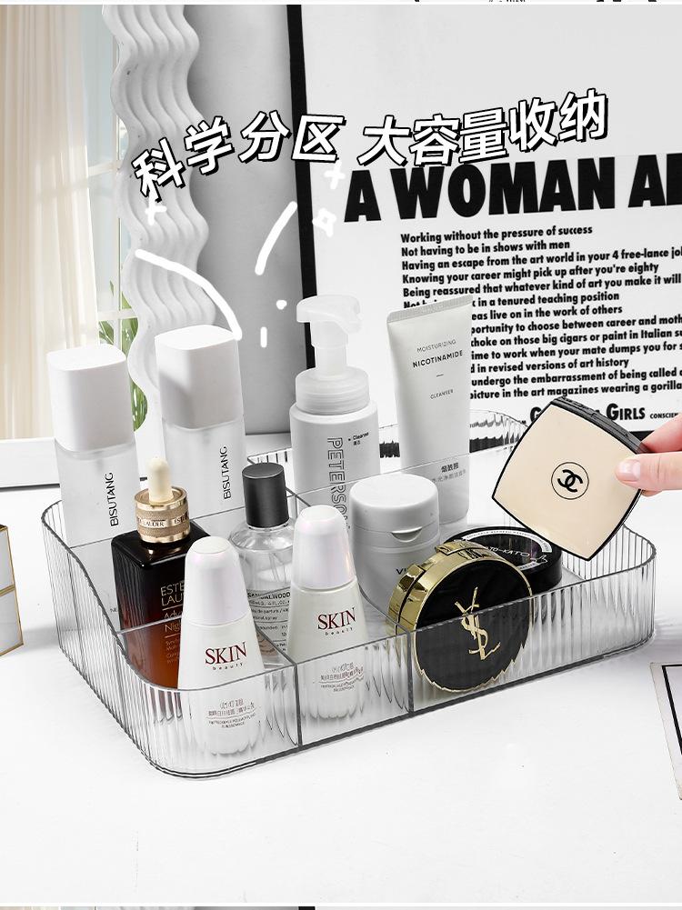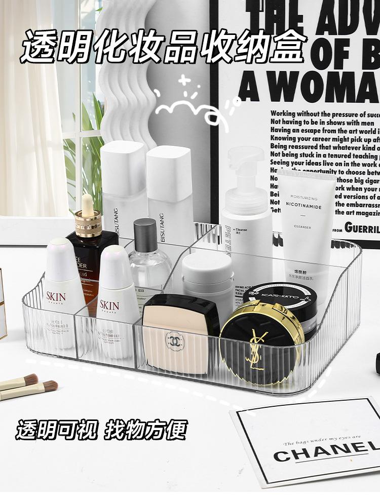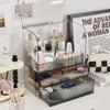 Caja de almacenamiento de cosméticos transparente caja de almacenamiento de escritorio lápiz labial brocha de maquillaje gran capacidad lujo ligero estante caja de maquillaje