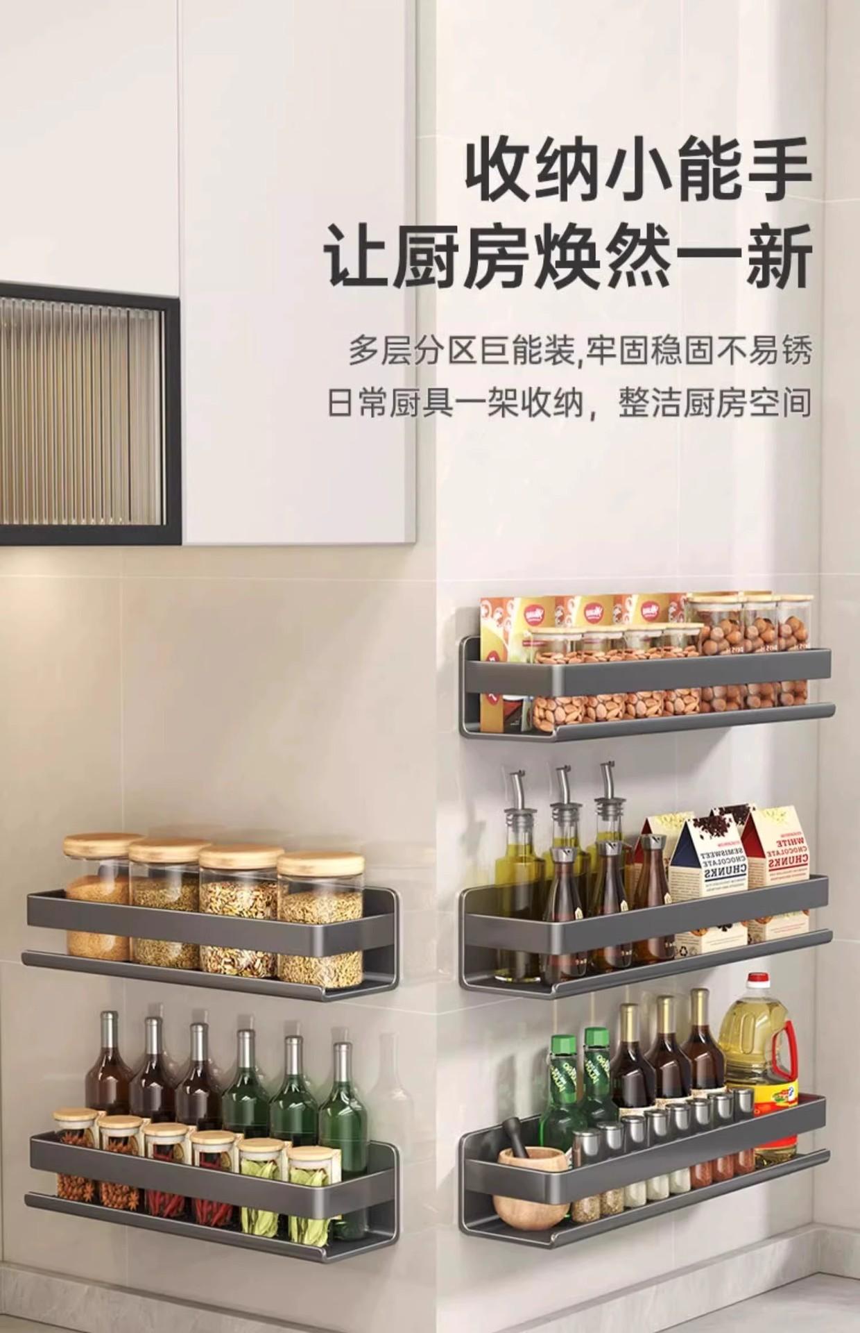Compra Estante Almacenador de Especias de Cocina Sin Perforación Montado en la Pared Multifuncional Estante para Colgar Estante Almacenador de Utensilios de Cocina al por mayor en Joom.pro