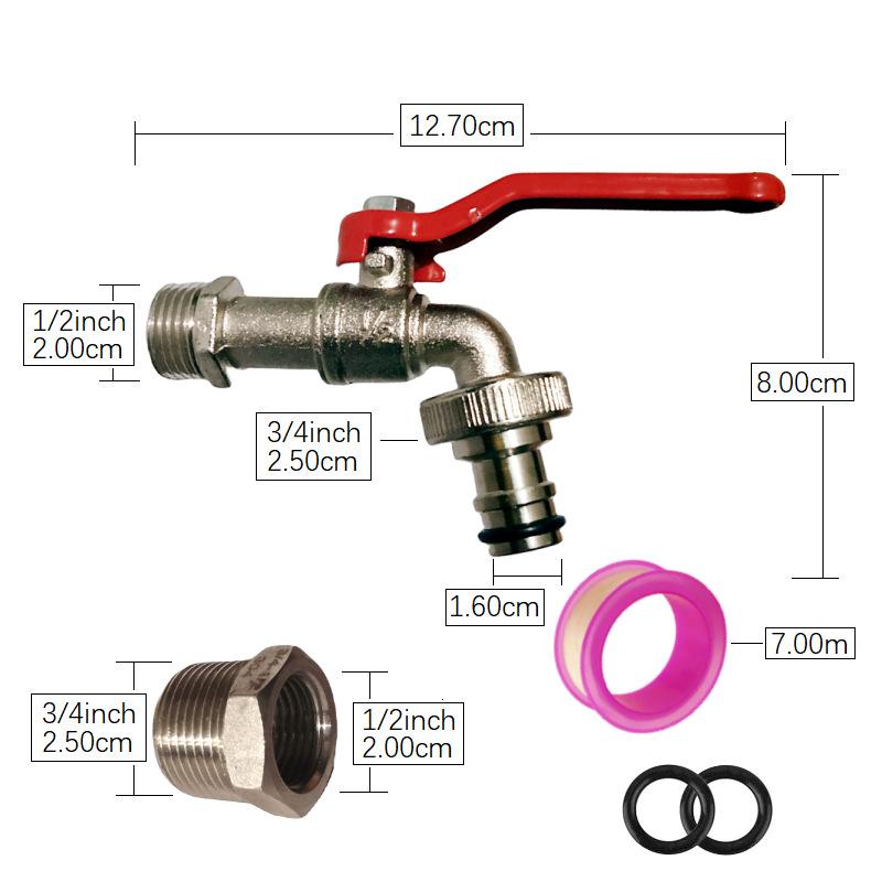 [Red] ~ stretch: 1/2 "x3/4" zinc alloy nipple water nozzle + stainless steel 4 Turn 6 fill core +7m raw material belt +2 O-rings