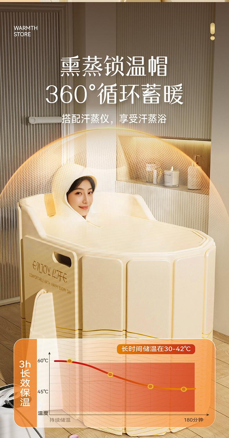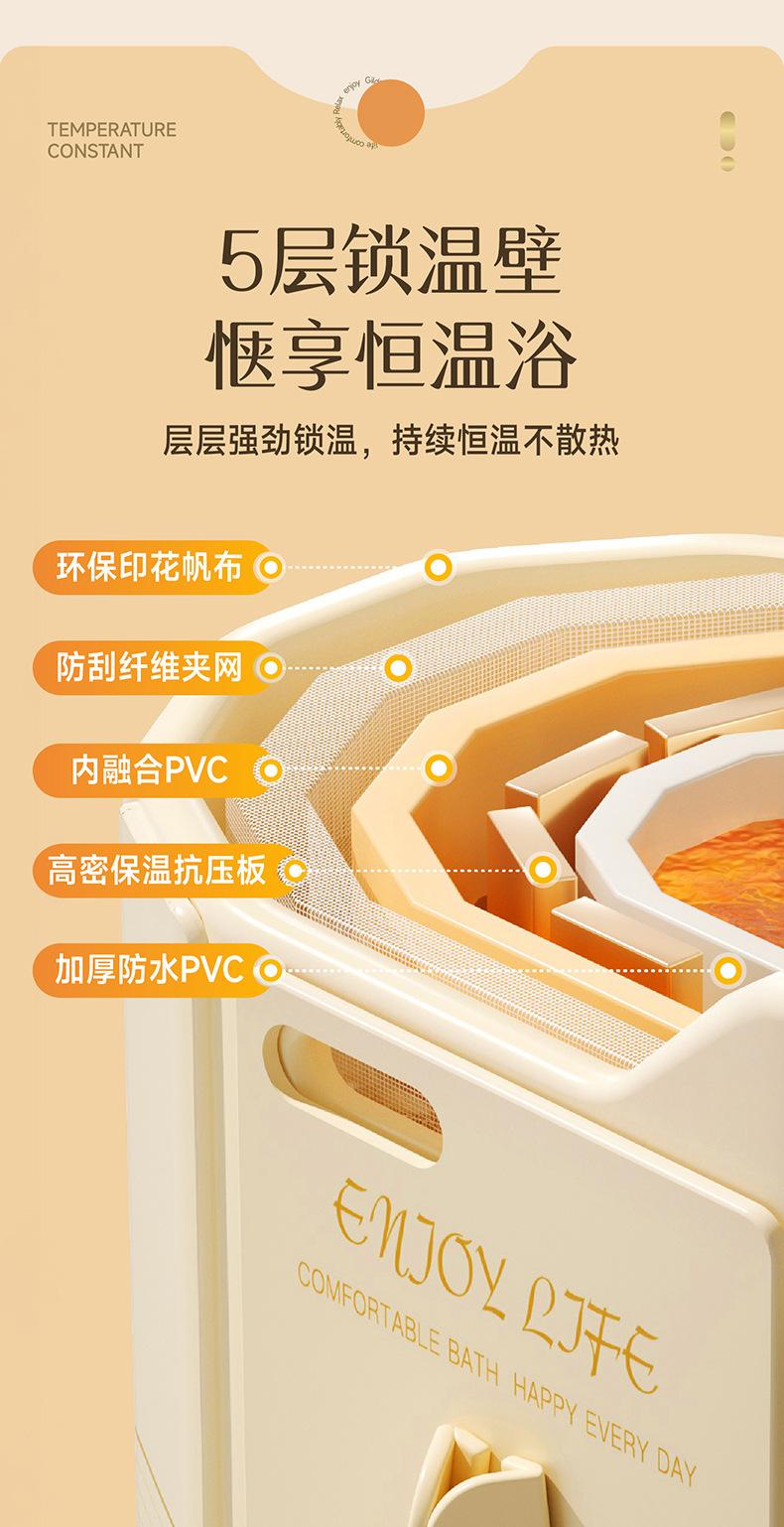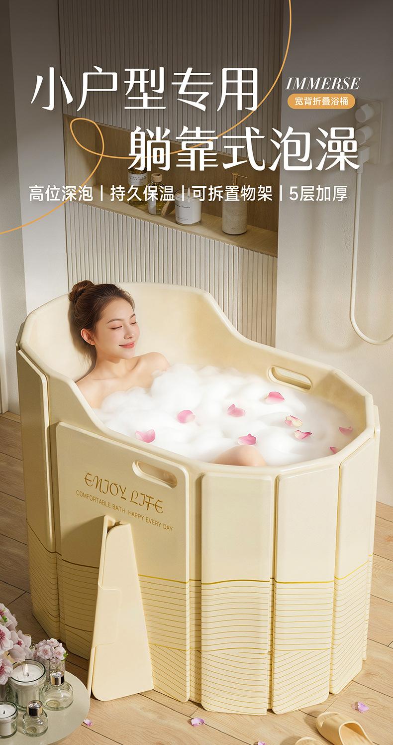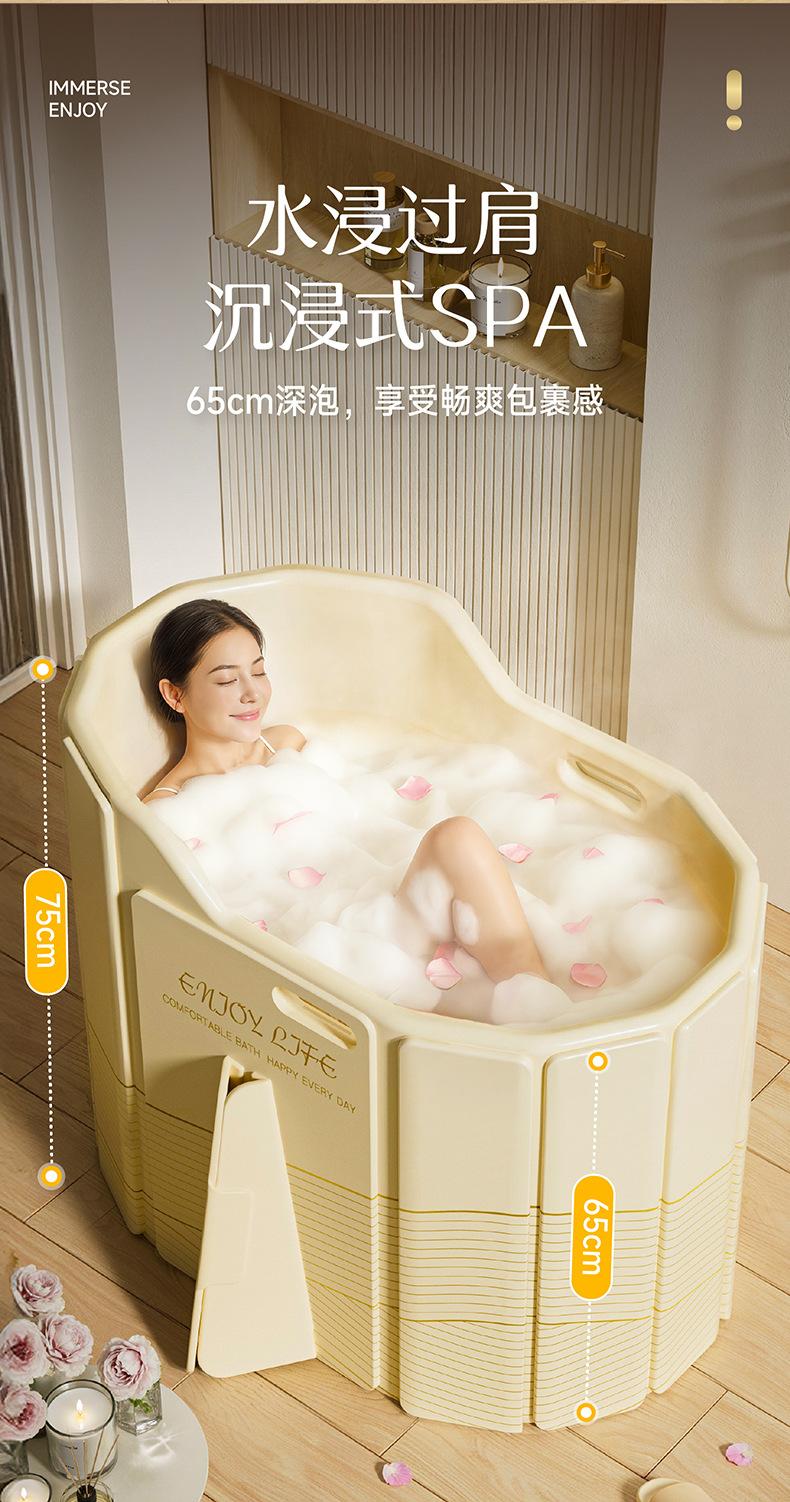 85*55cm Gilded Years Adult High Deep Folding Bathtub - Regular, 85*55cm Peach Bubble Adult Deep Folding Bathtu...