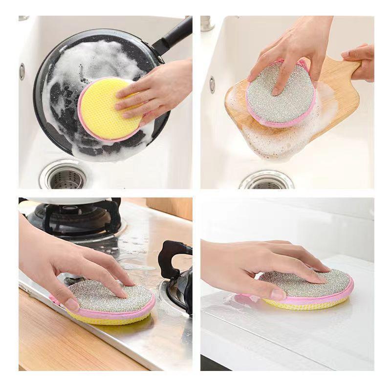 Esponja de Limpieza de Doble Cara Esponja para Lavar Platos Bloque Cocina Antiadherente Cepillo para Ollas Artefacto Paño para Lavar Platos Doméstico Estropajo Mágico