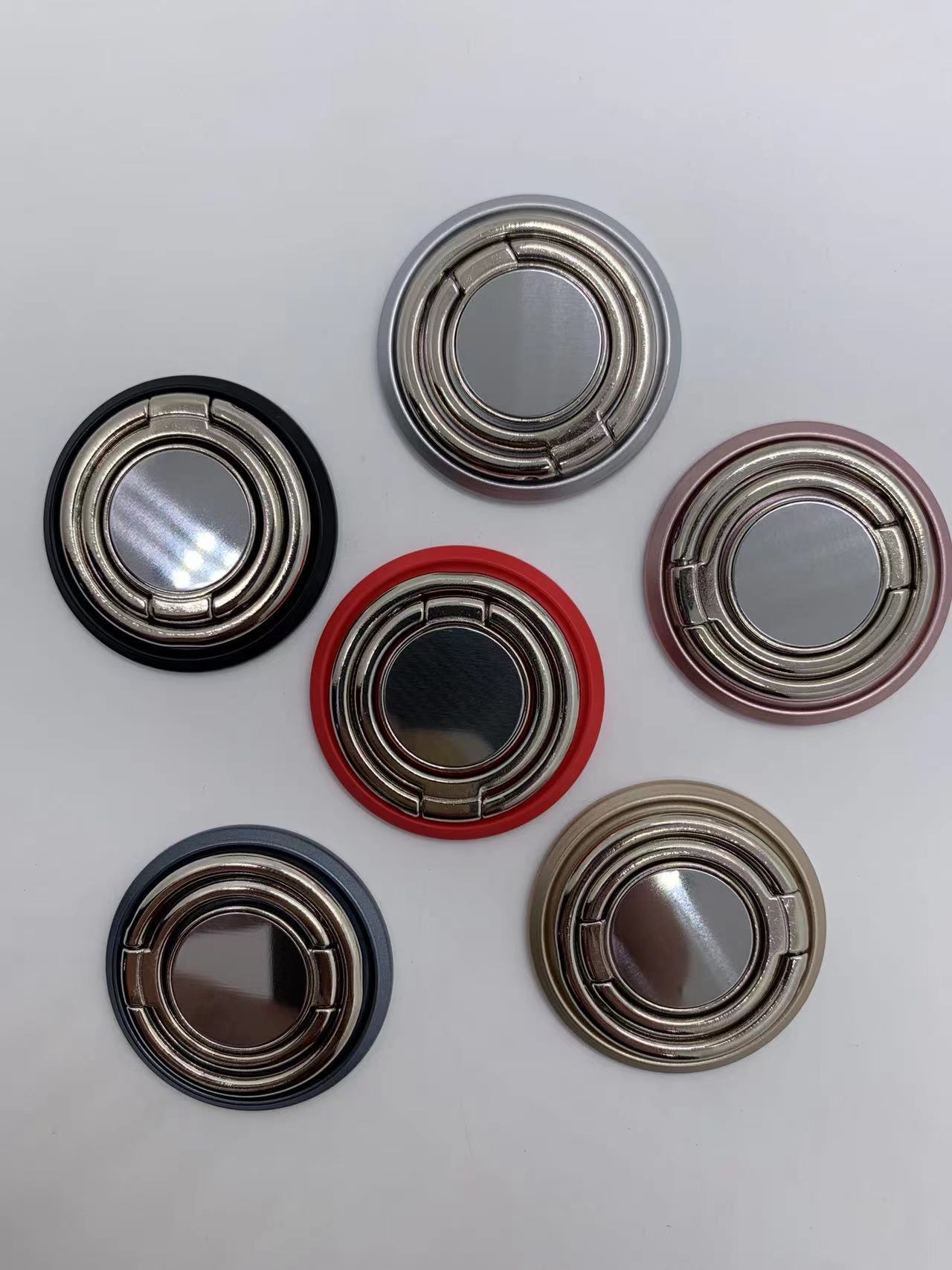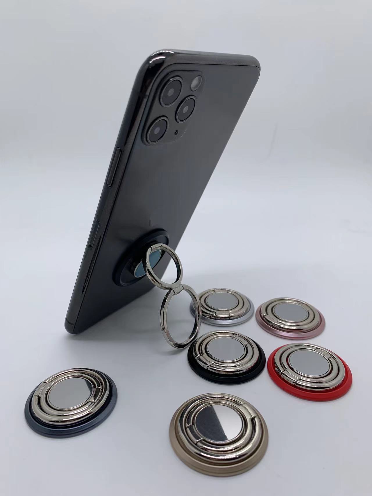 Punto destacado 5: Se puede usar como hebilla anticaída en la palma, un marco de soporte sobre la mesa y un soporte magnético para teléfono de coche en el coche (con un soporte magnético para coche)