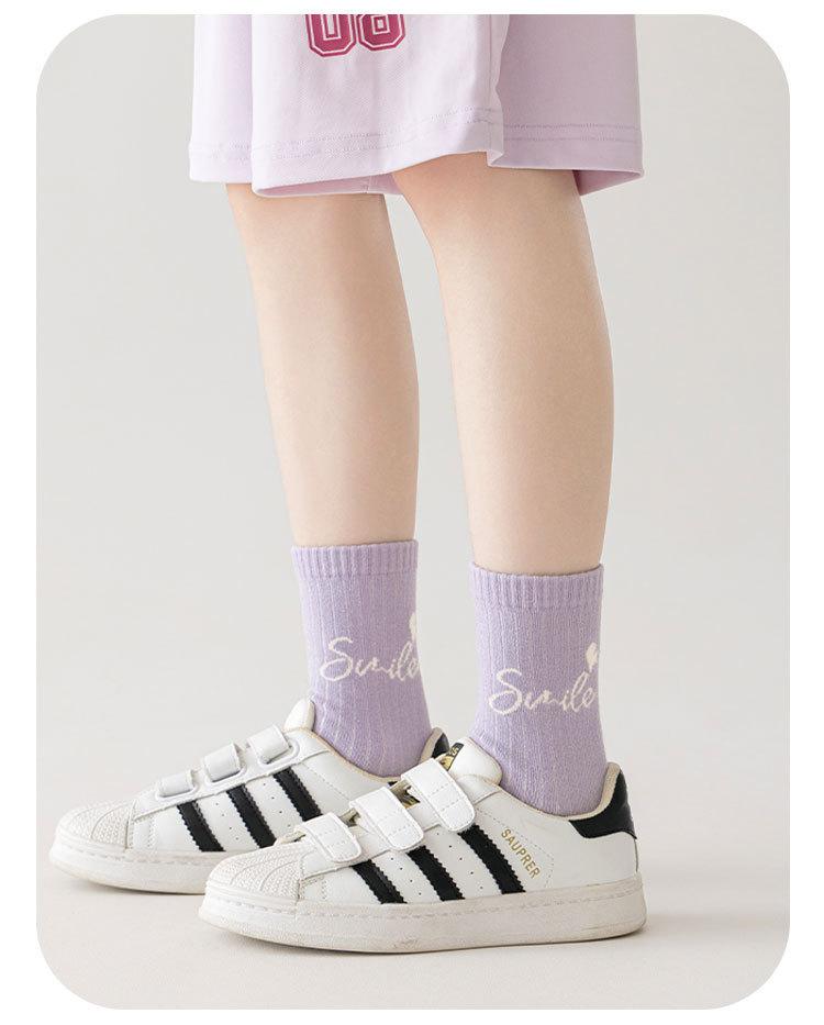 Calcetines para Niñas Otoño Nuevos Algodón Peinado Calcetines Media Caña Calcetines para Niños Calcetines Deportivos con Letras Sin Costuras Clase A Transpirables Calcetines de Moda