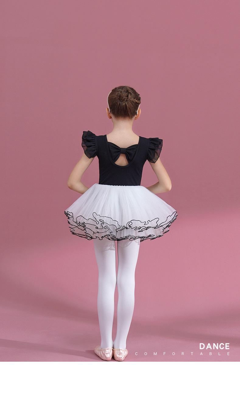 Ropa de Danza Infantil de Algodón Puro Verano Manga Corta Negro Ropa de Práctica para Niñas Falda de Tul para Niñas Pequeñas Graduación de Danza China