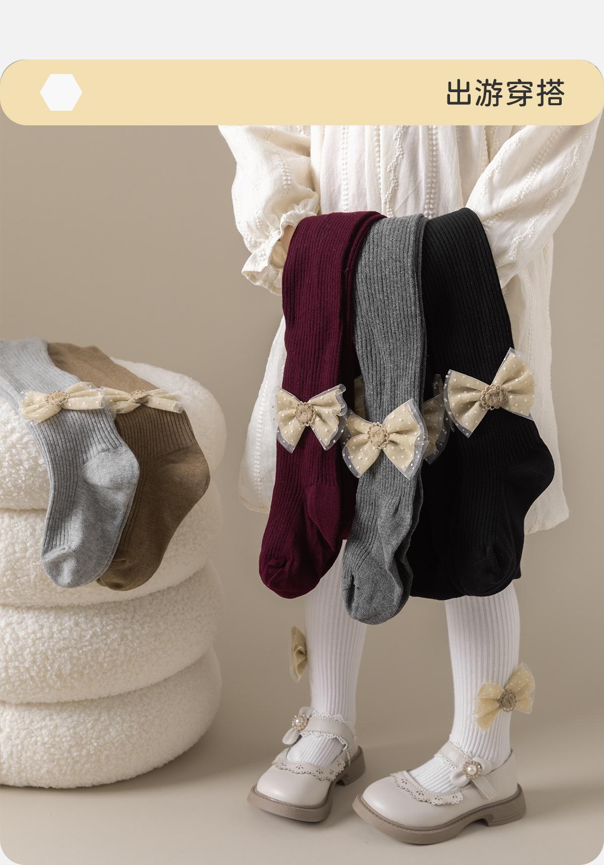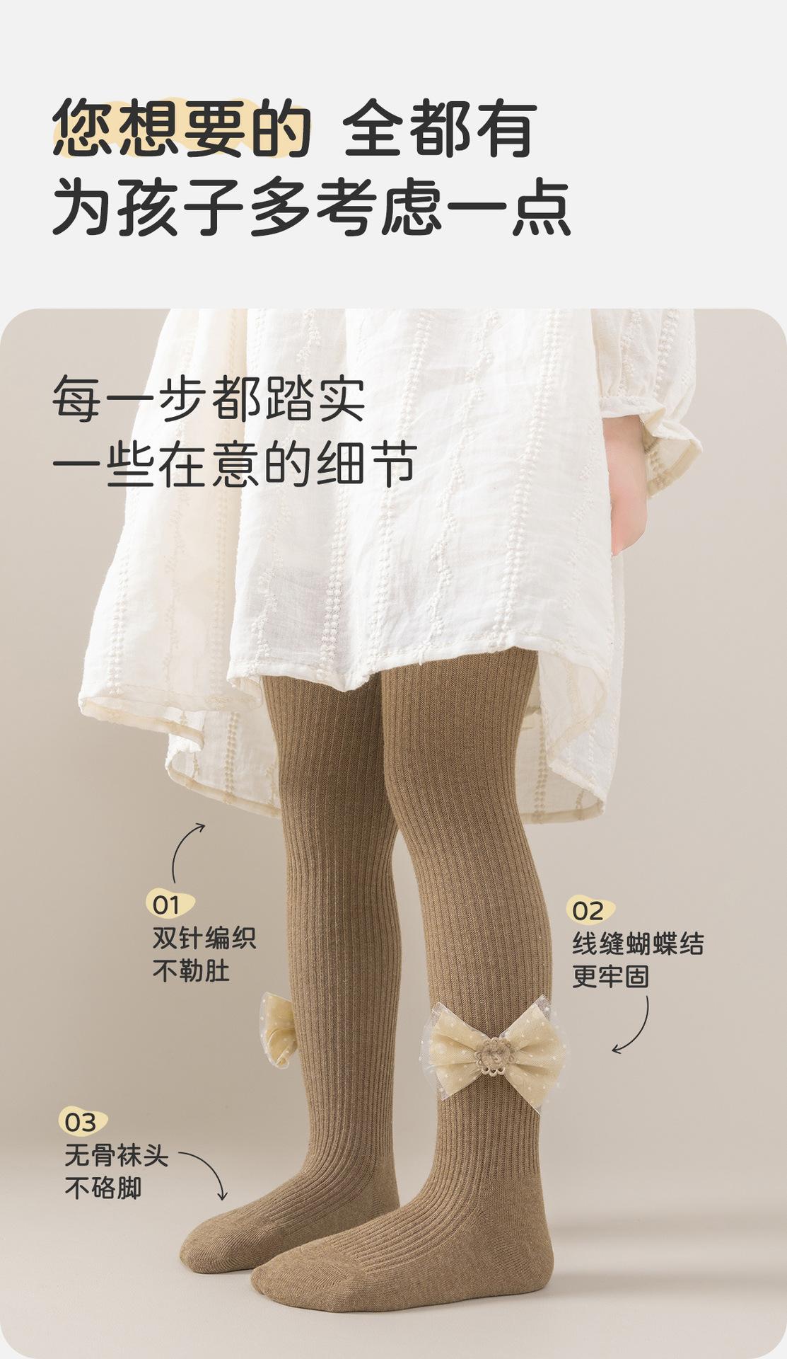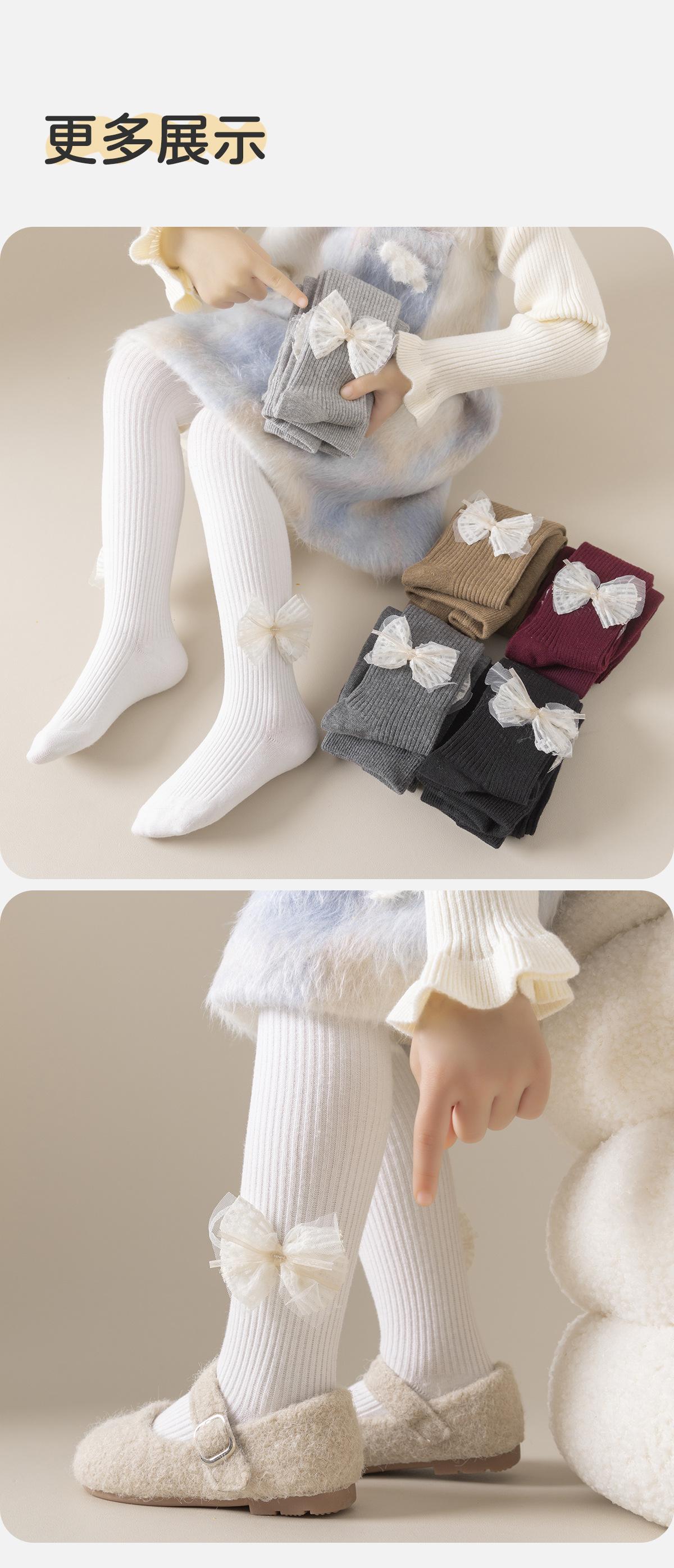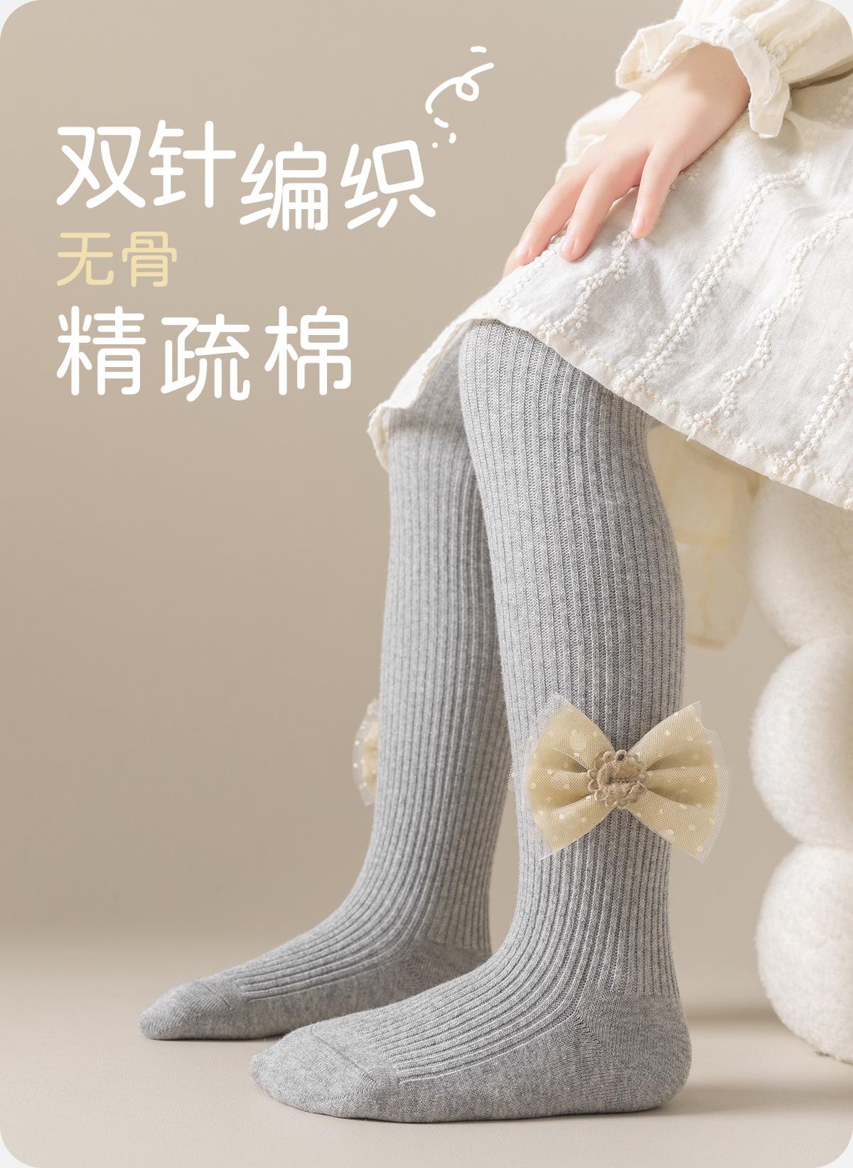 Mallas para niños primavera y otoño lindo lazo niña leggings con pie color sólido versátil pantalón calcetín para bebé clase a