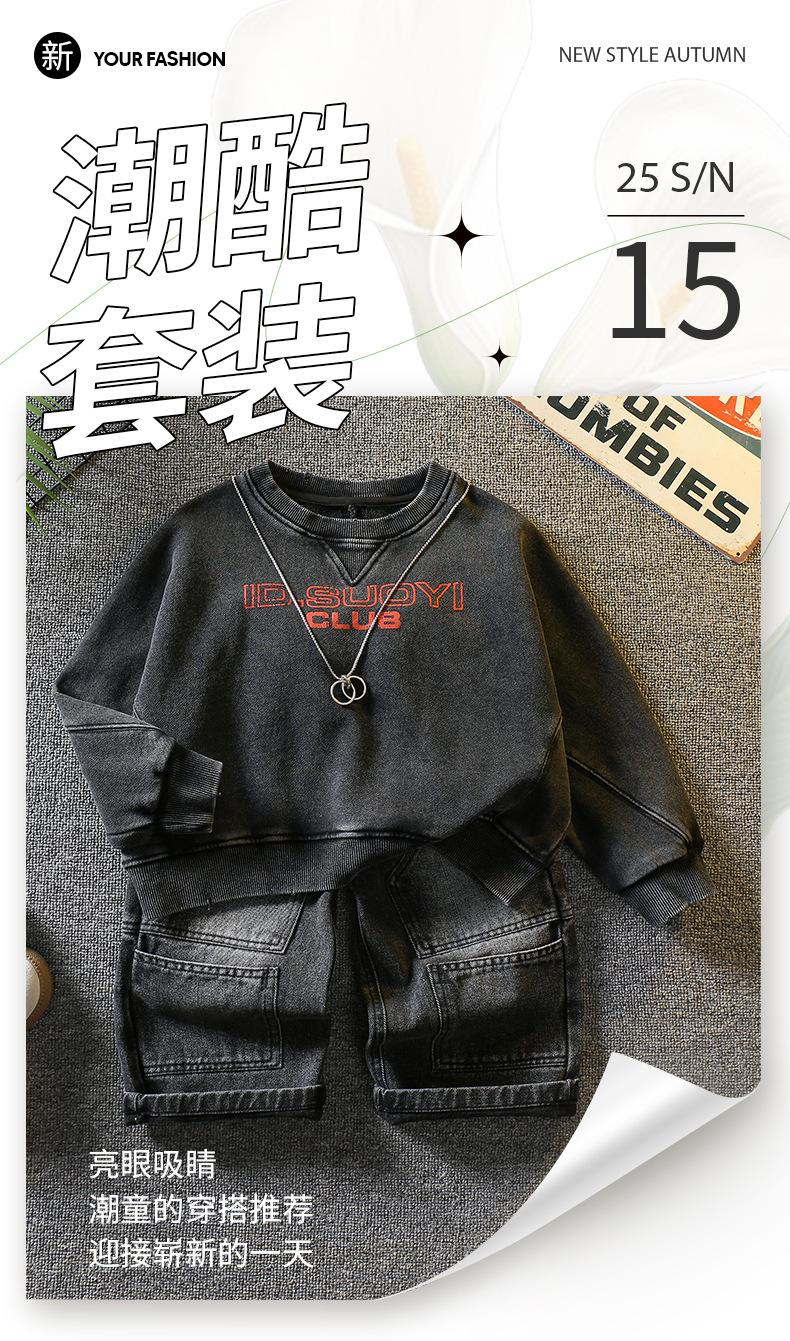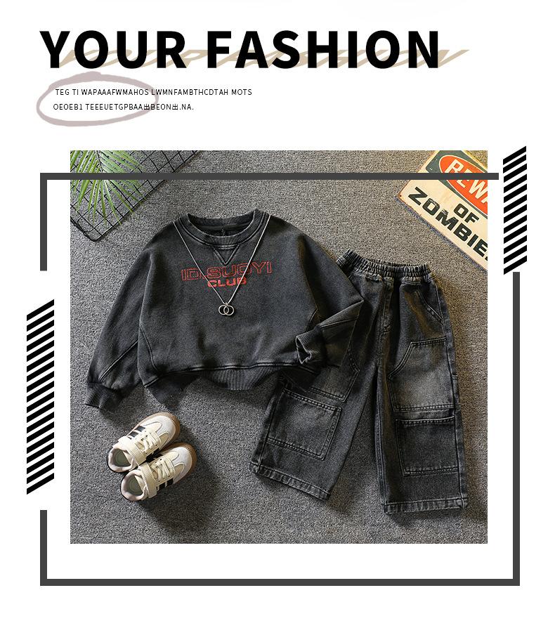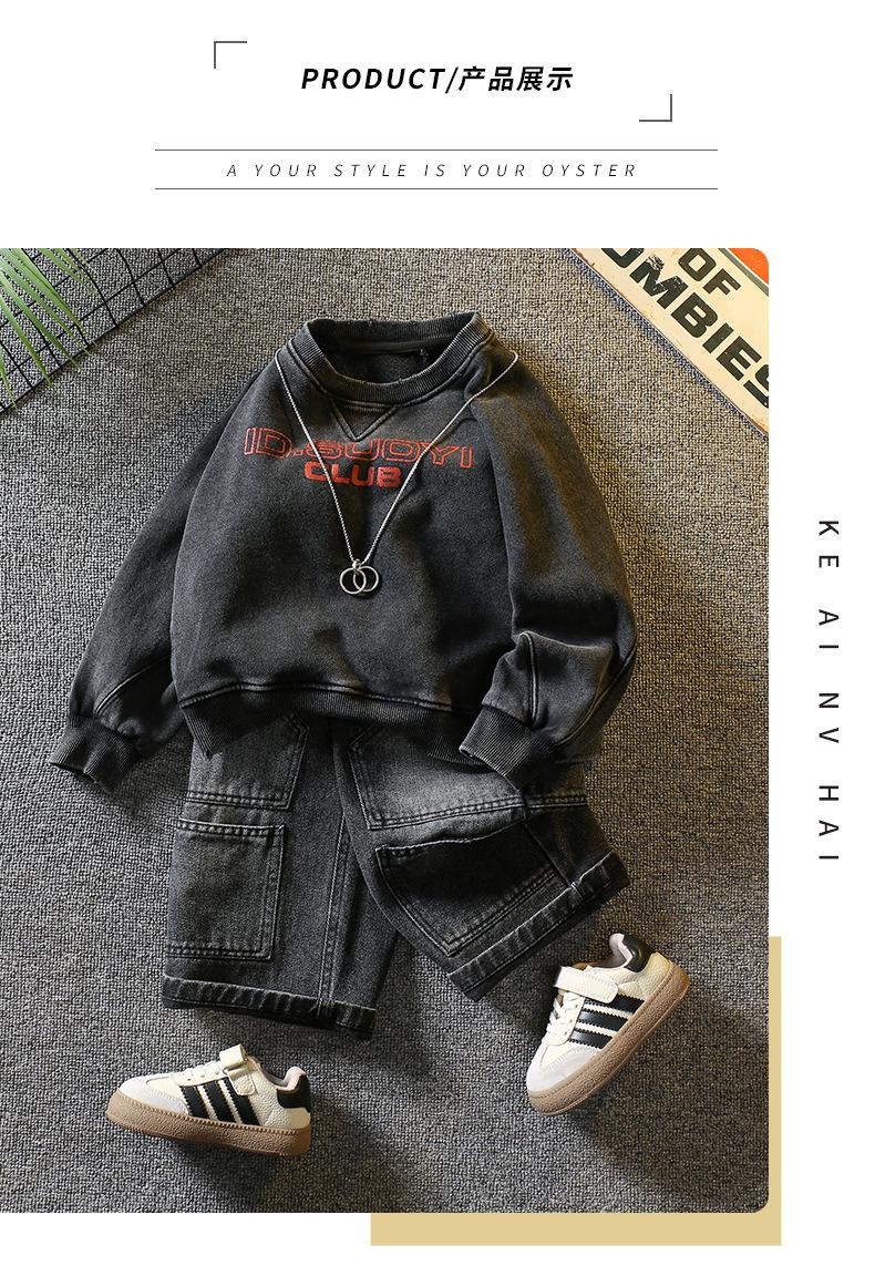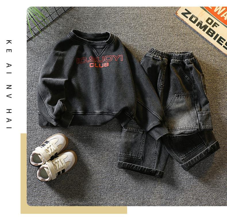 Conjunto de Sudadera de Primavera y Otoño para Niño 2025 Nuevo Conjunto de Dos Piezas de Jeans Moderno y Guapo para Niños Ropa de Bebé Marea