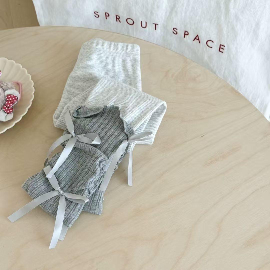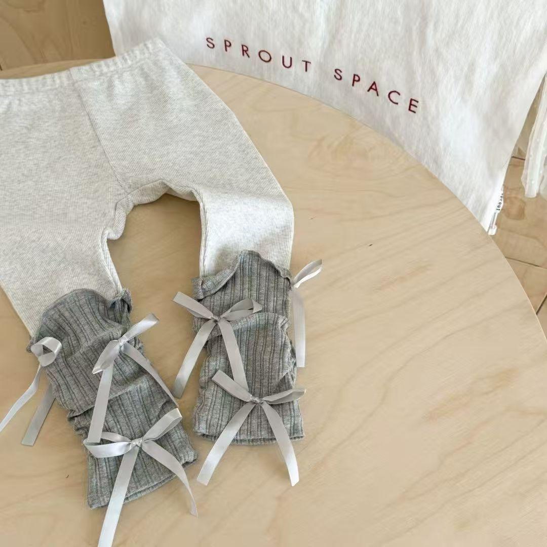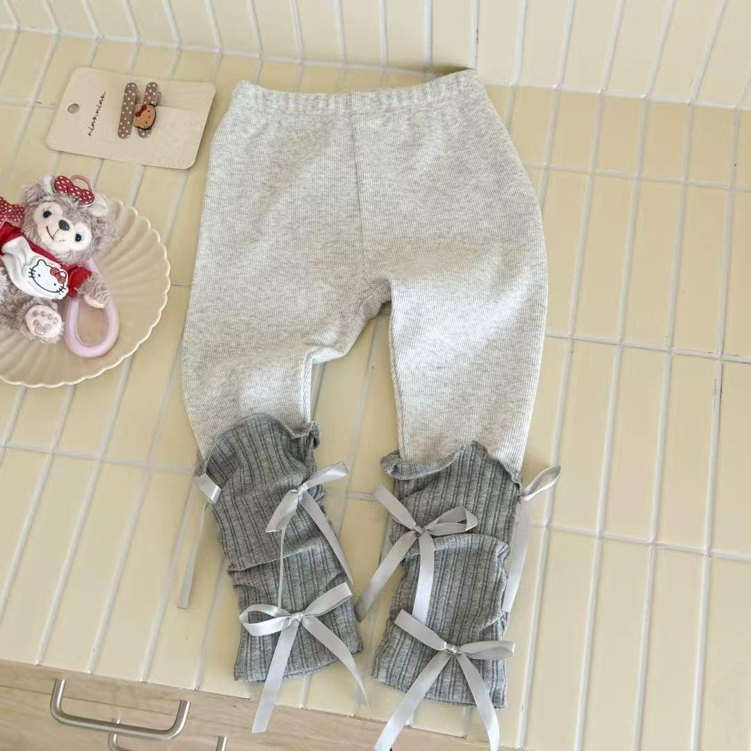 Leggings de Primavera y Otoño para Niñas, Moda Infantil, Individual, Moderno, Elegante, Bloque de Color, Lazo, Volante, Ropa Exterior, Pantalones Largos