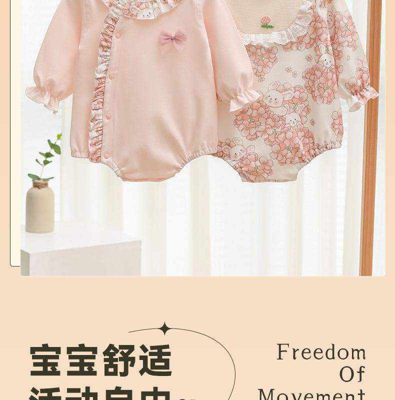 Mameluco de algodón puro de manga larga para bebé recién nacido tipo otoño e invierno ropa de pedos sin costuras niños y niñas estilo princesa bebé mameluco triangular