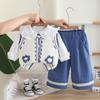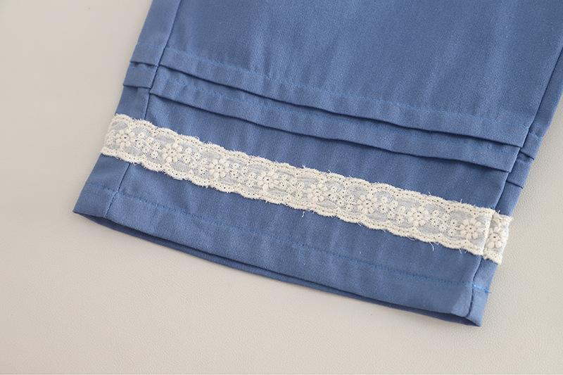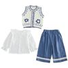 Blue Small Flower Vest Long Sleeve Three-Piece Set