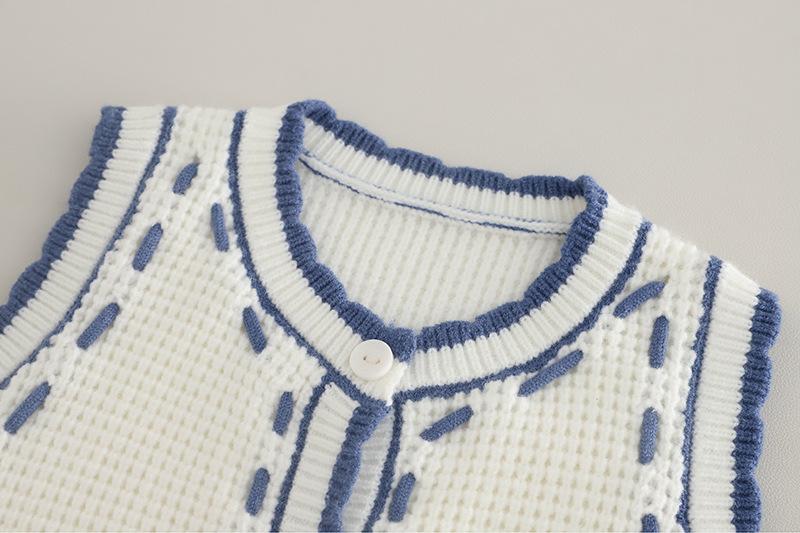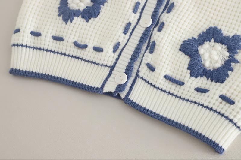 Blue Small Flower Vest Long Sleeve Three-Piece Set, Pink Small Flower Vest Long Sleeve Three-Piece Set