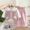 Pink Small Flower Vest Long Sleeve Three-Piece Set