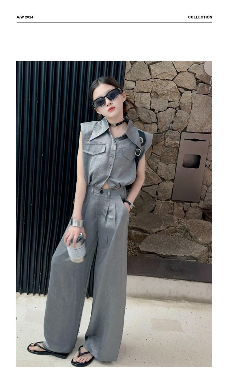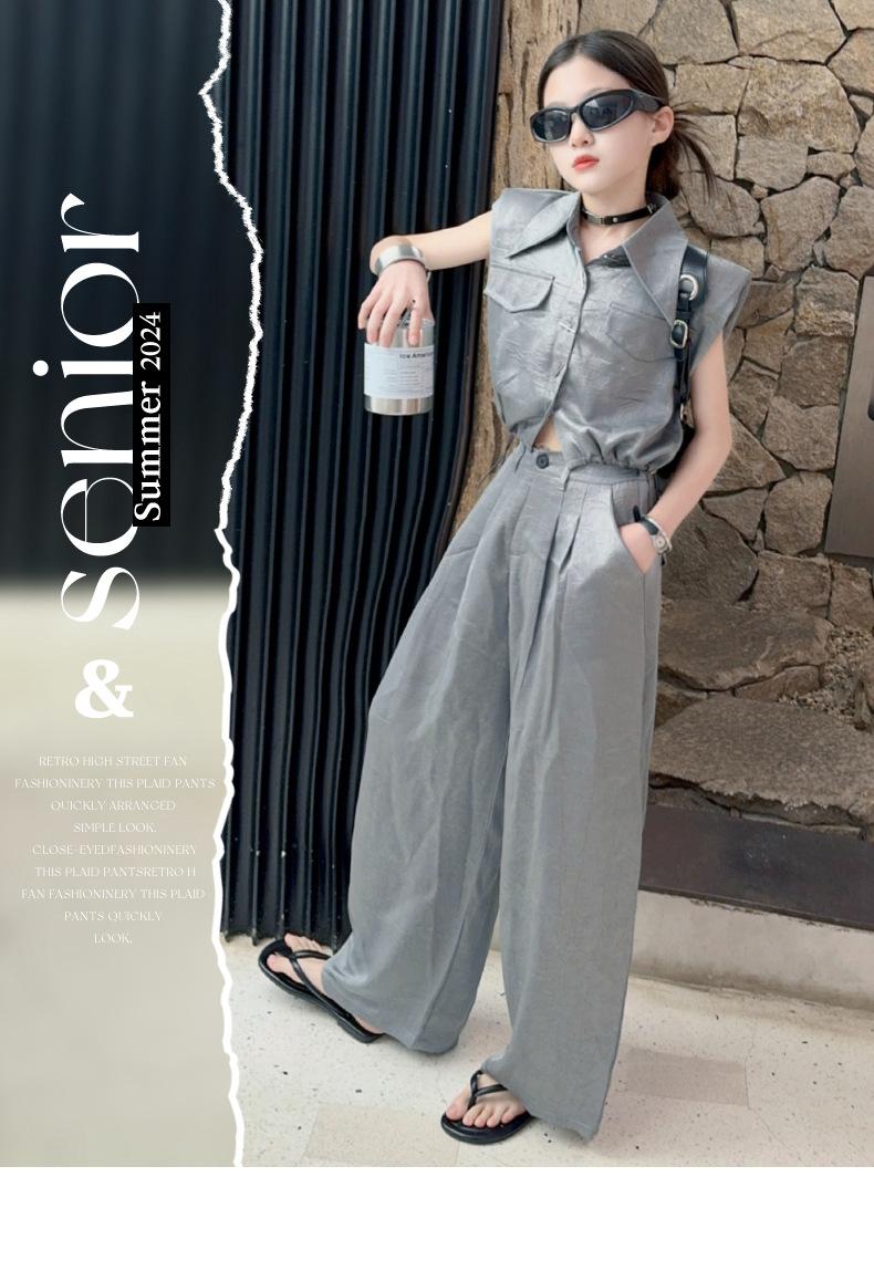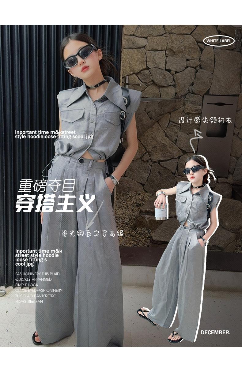 Traje de verano para niñas 2024 Nueva Moda Camisa elegante estilo coreano para traje Niños