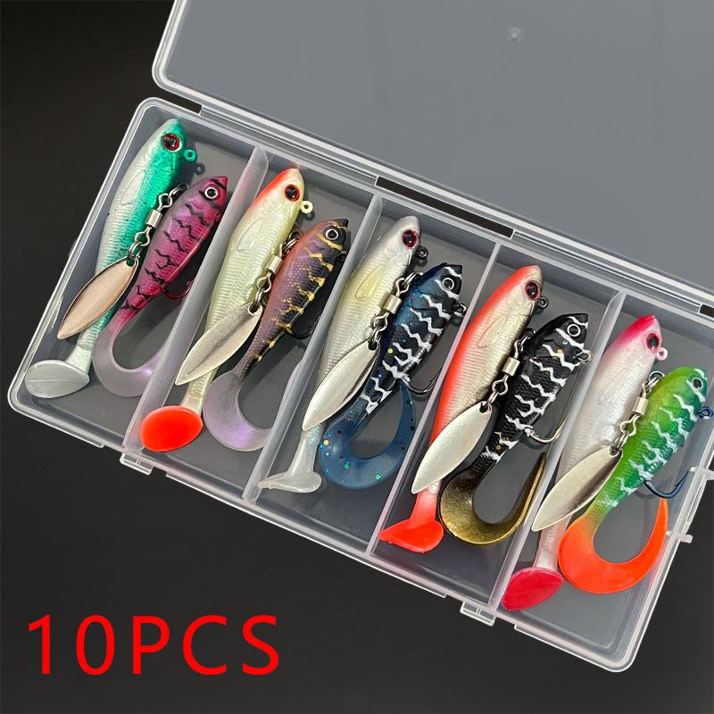 10 piezas de cebo blando 6g7g lentejuelas giratorias biónico Luya cebo falso pez mandarín con boca blanda
