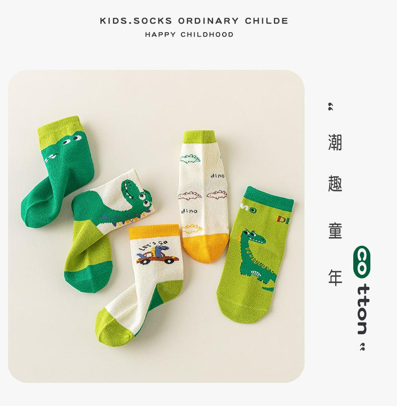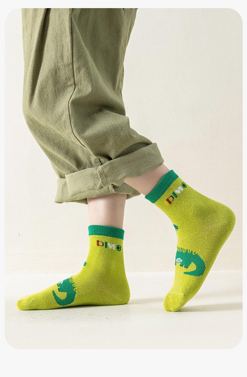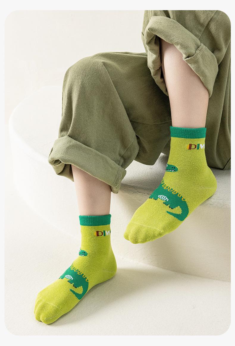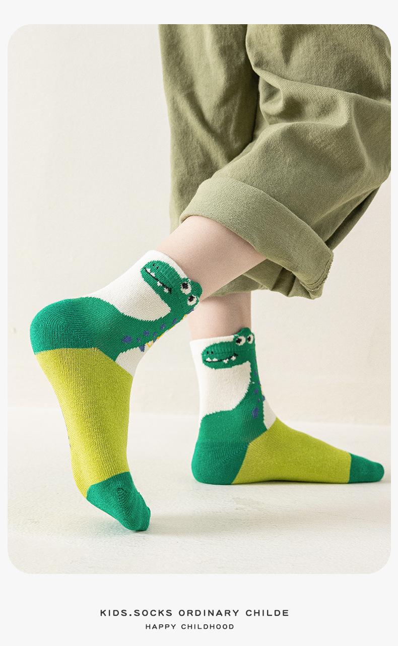 Calcetines de Otoño para Niños al Por Mayor Otoño Nuevo Dinosaurio Verde Calcetines para Niños Calcetines para Niños Pequeños y Medianos Calcetines de Dibujos Animados para Niños