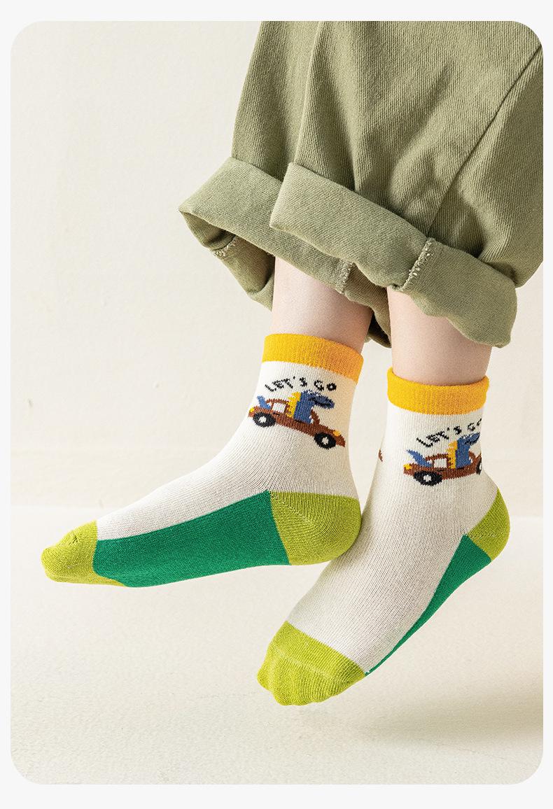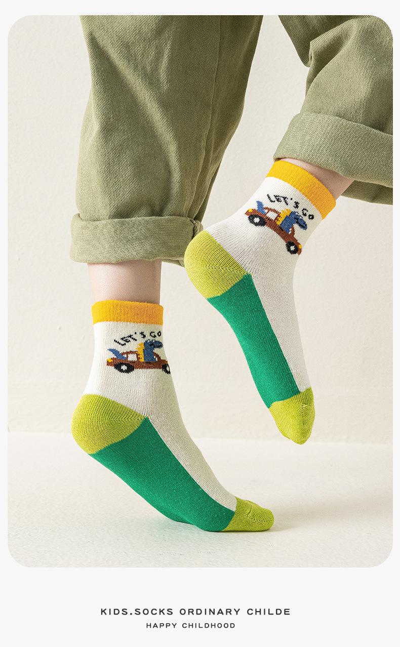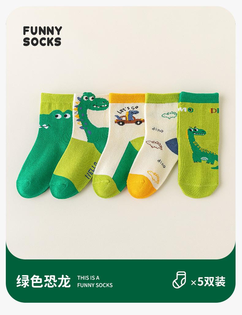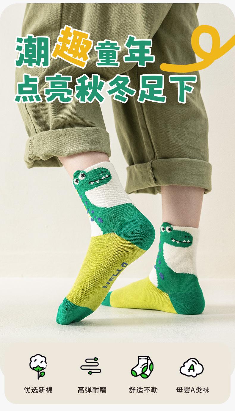 Calcetines de Otoño para Niños al Por Mayor Otoño Nuevo Dinosaurio Verde Calcetines para Niños Calcetines para Niños Pequeños y Medianos Calcetines de Dibujos Animados para Niños