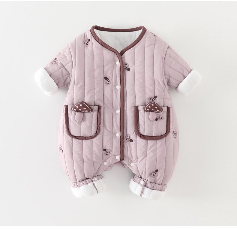 Mameluco Delgado de Algodón para Bebé Otoño e Invierno Niña Bebé Nuevo Rojo de Internet Súper Lindo Ropa Acolchada de Algodón Mameluco de Princesa Estilo Extranjero Traje para Gatear