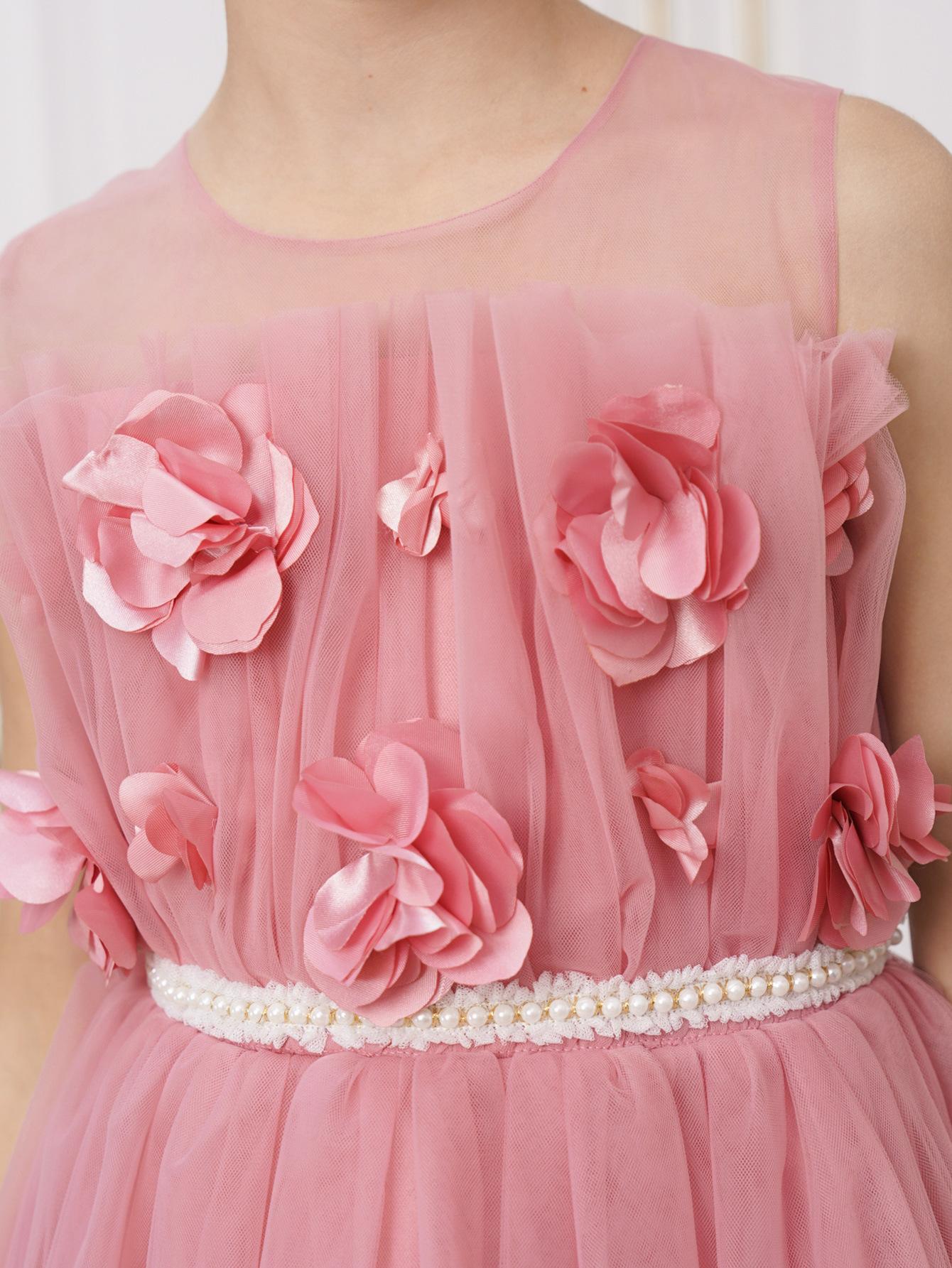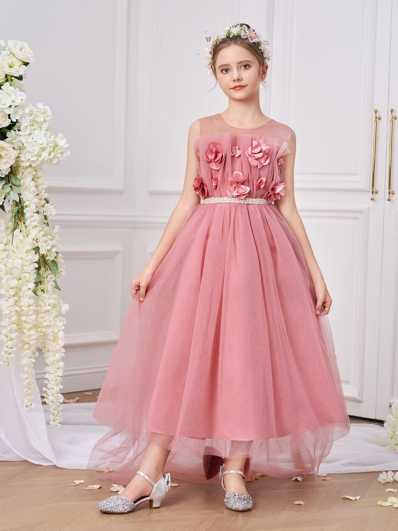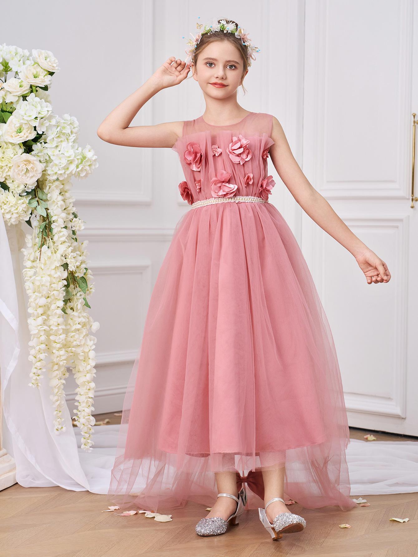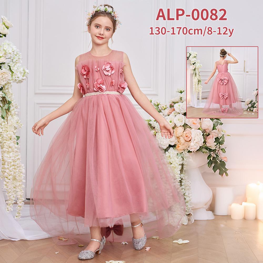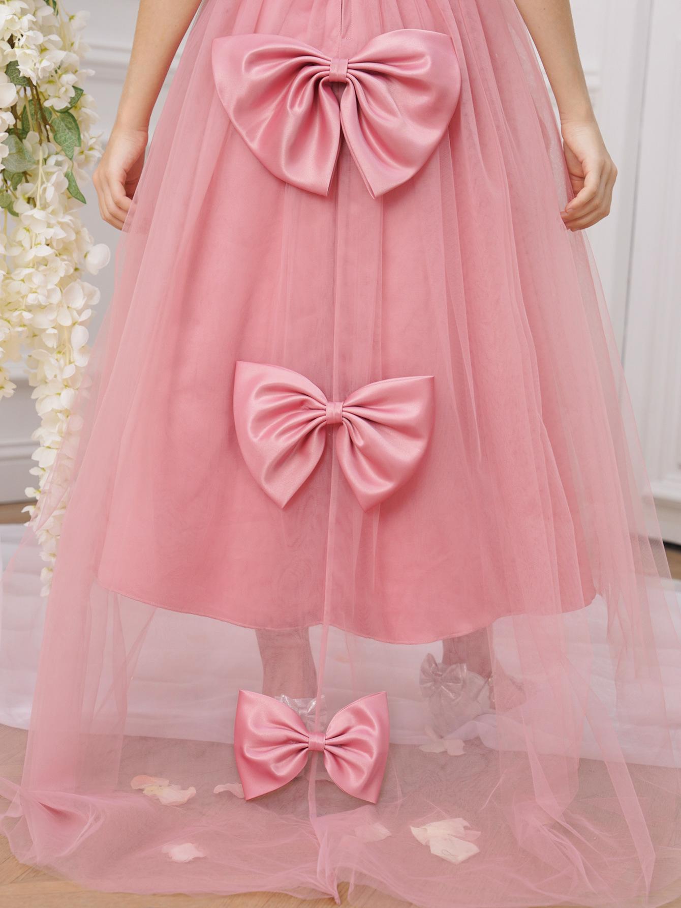Vestido Transfronterizo para Niñas Medianas y Grandes Vacaciones Boda Banquete Malla Niña de las Flores Esponjoso Vestido de Princesa Lazo Tridimensional Cola Vestido de Noche