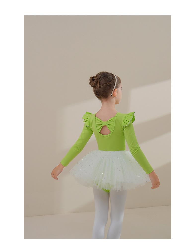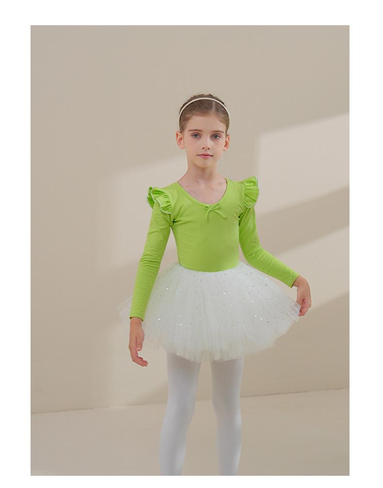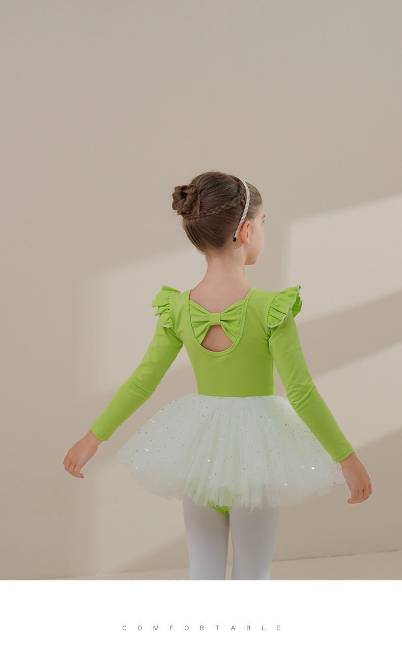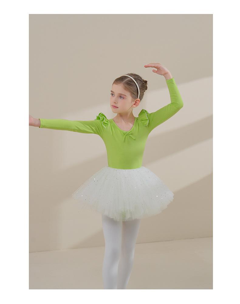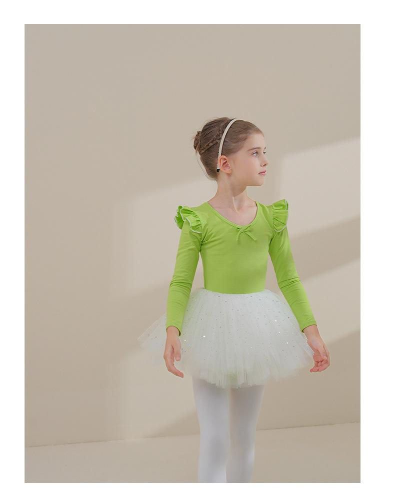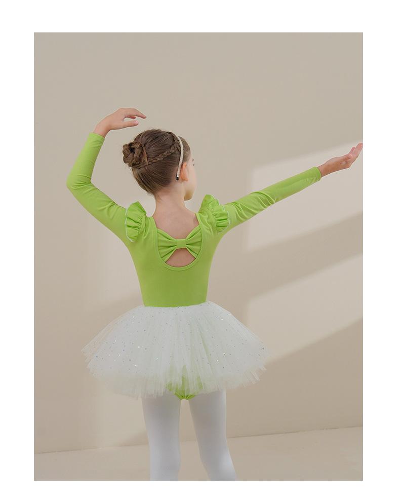 Ropa de Danza Infantil Otoño Manga Larga Ropa de Práctica para Niñas Algodón Puro Verde Fruta Ropa de Práctica de Danza China Vestido de Ballet para Niñas Pequeñas