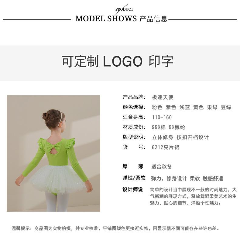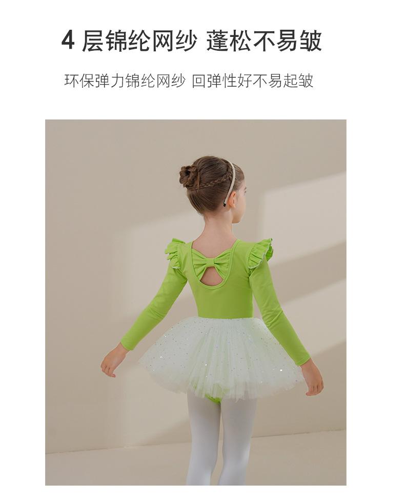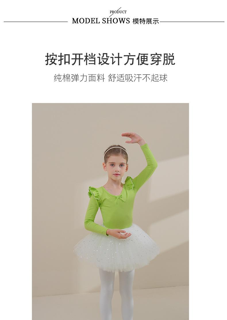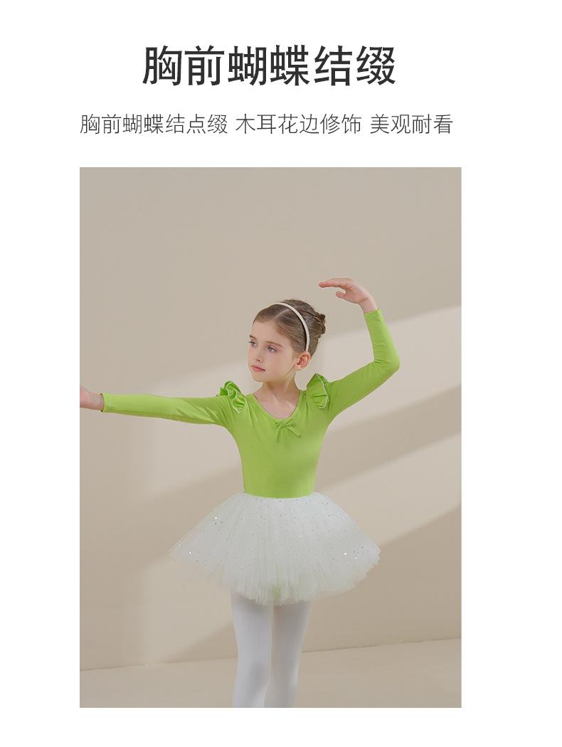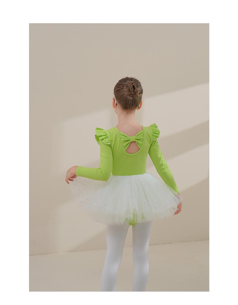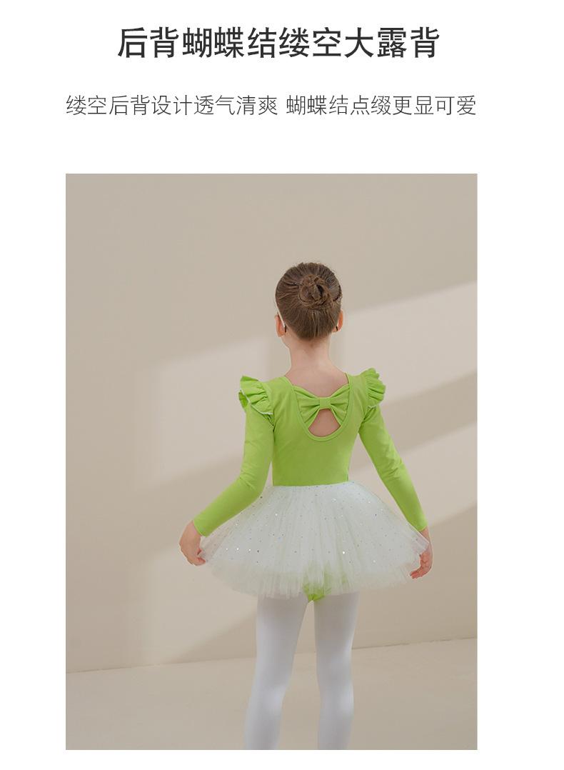Ropa de Danza Infantil Otoño Manga Larga Ropa de Práctica para Niñas Algodón Puro Verde Fruta Ropa de Práctica de Danza China Vestido de Ballet para Niñas Pequeñas