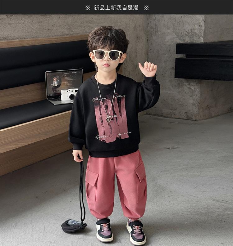 Conjunto de Sudadera de Otoño para Niños 2025 Nuevo Estilo Estilo Primavera y Otoño para Bebés Ropa para Niños Ropa Urbana Fresca y Elegante Ropa para Niños de Cuello Redondo